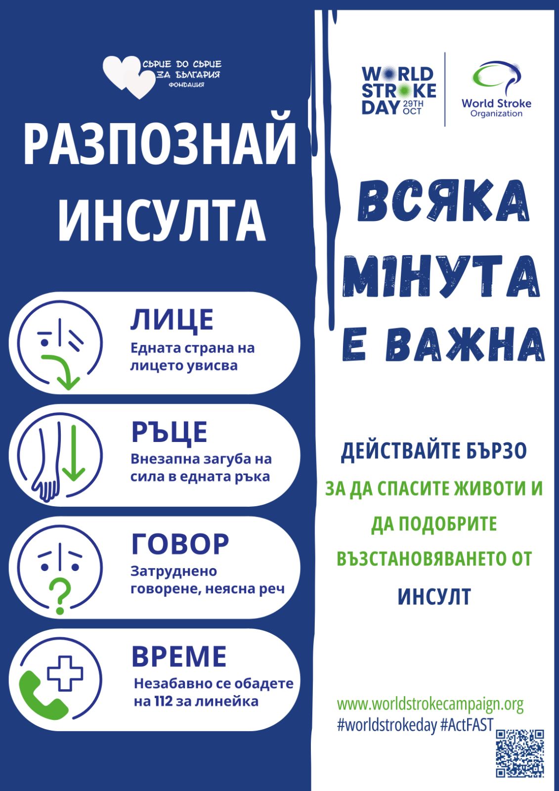 Днес се включихме в отбелязването на 29 октомври – Световния ден за борба с инсулта.