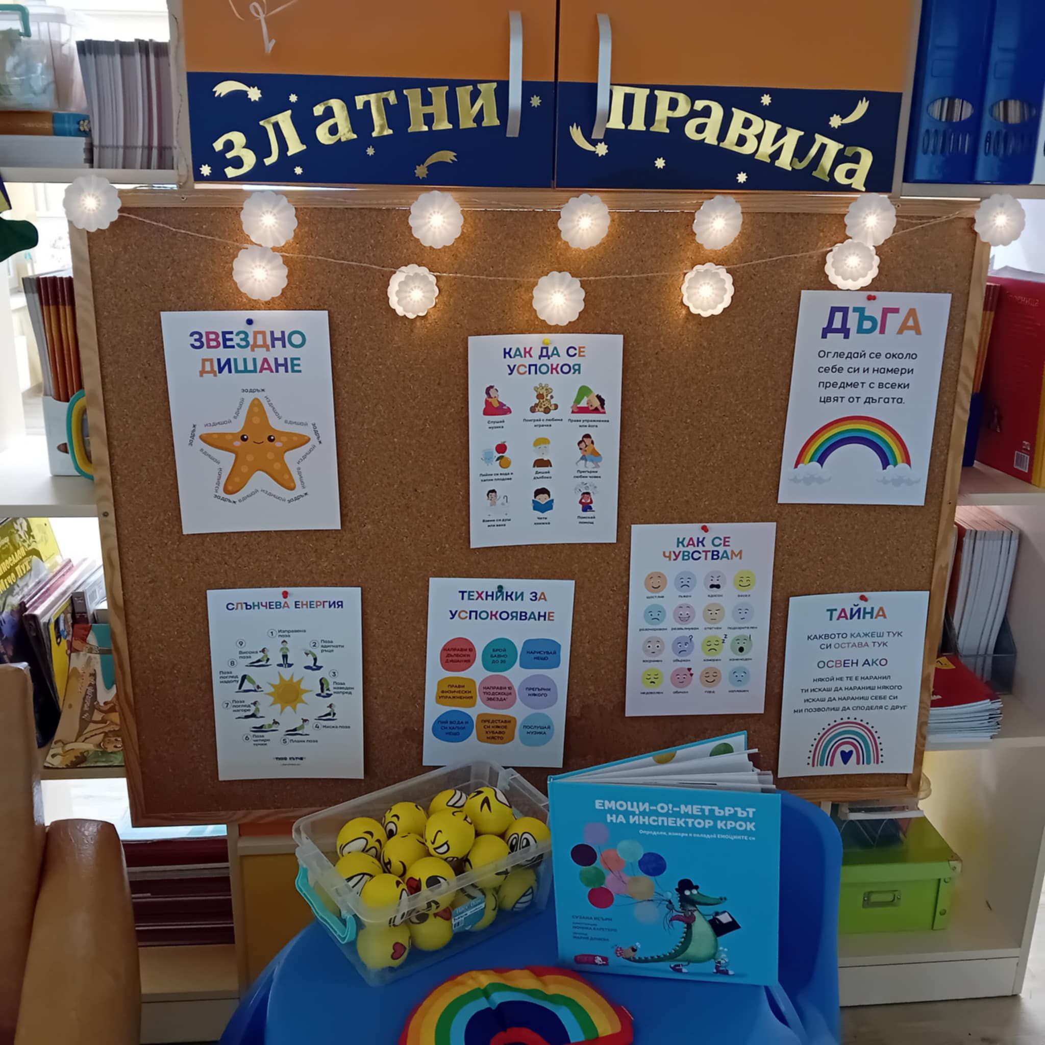 Изграждане на мобилни кътове в групите за спазване на “Златни правила “ за поведение, релакс и снемане на напрежение.
