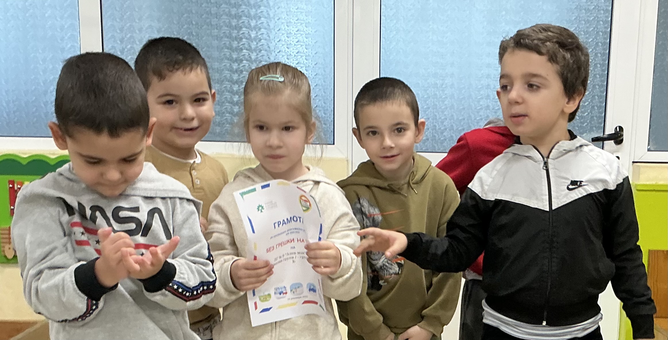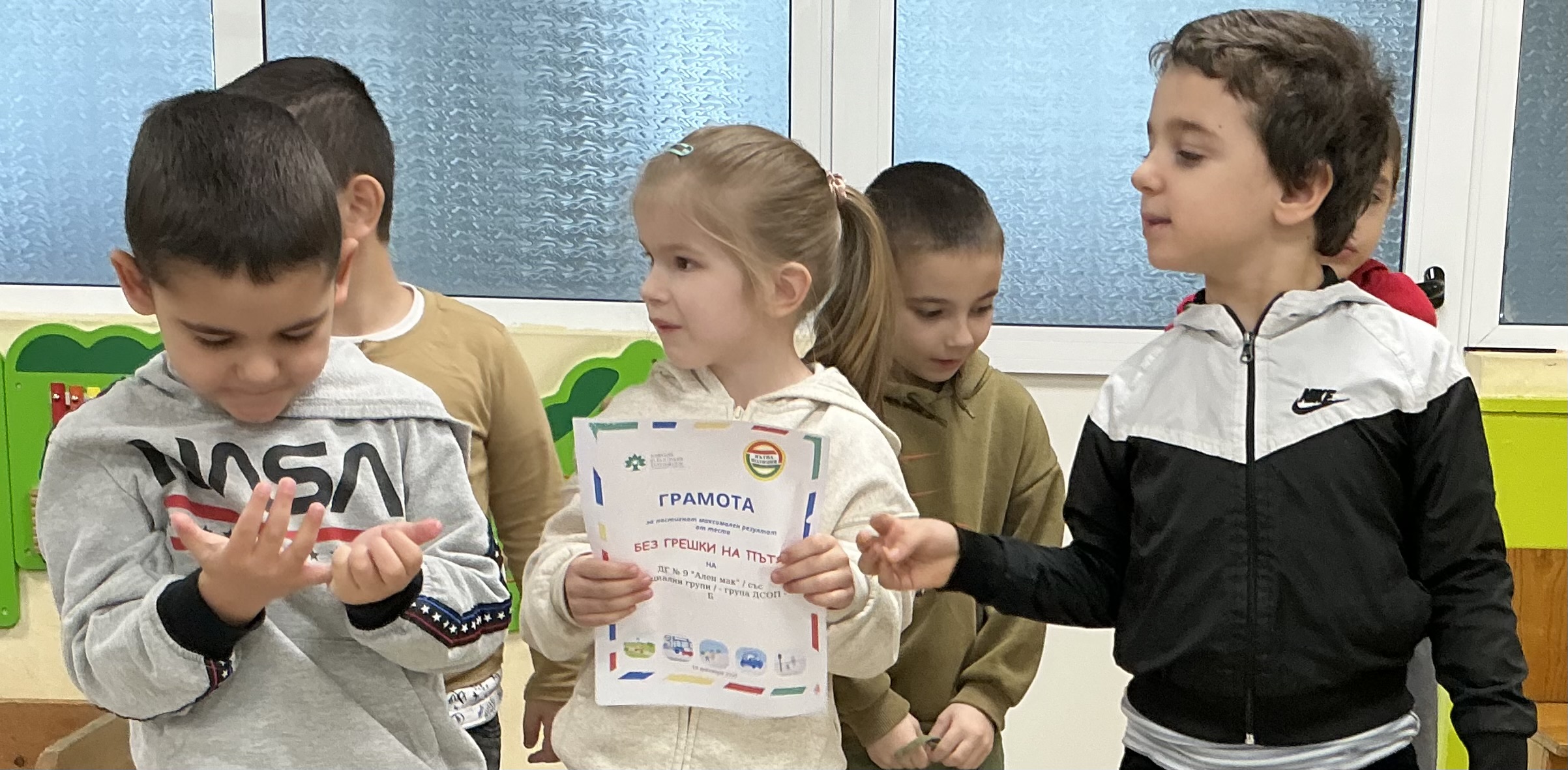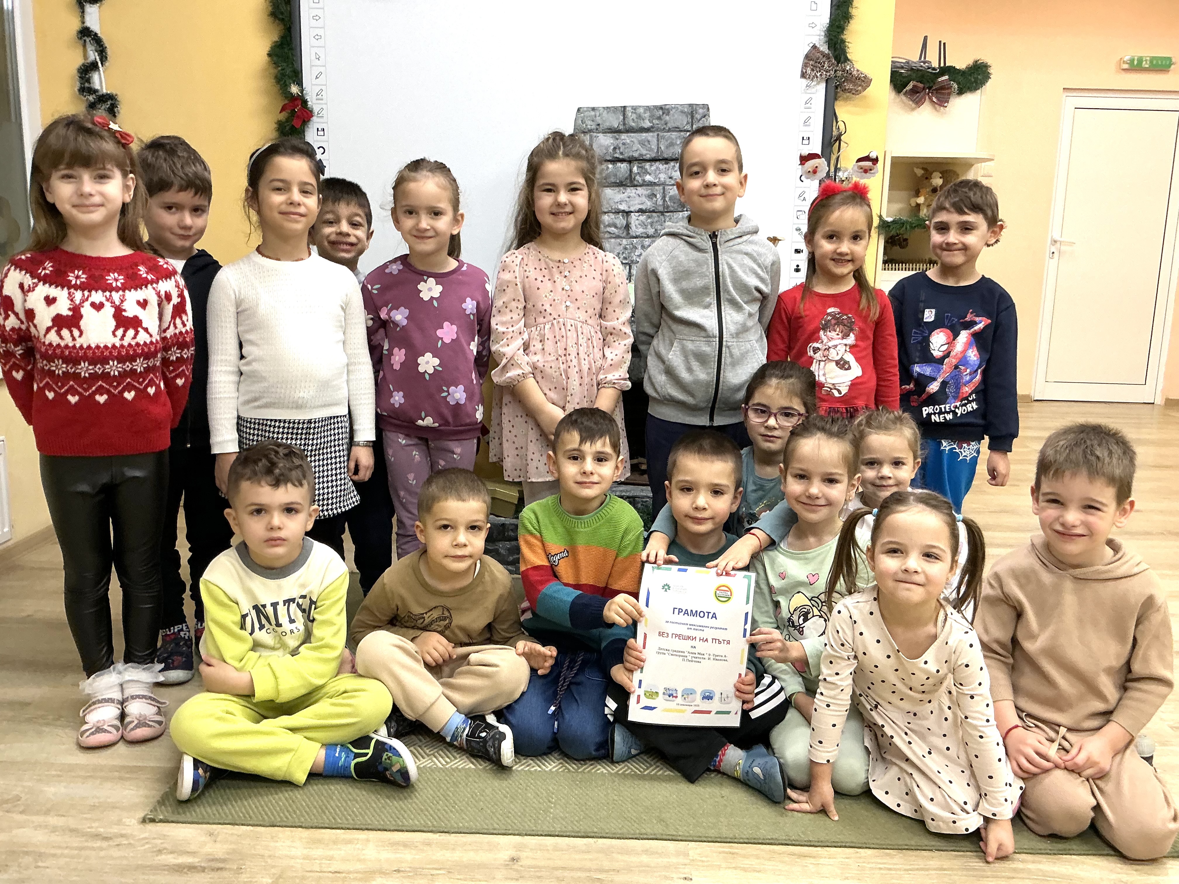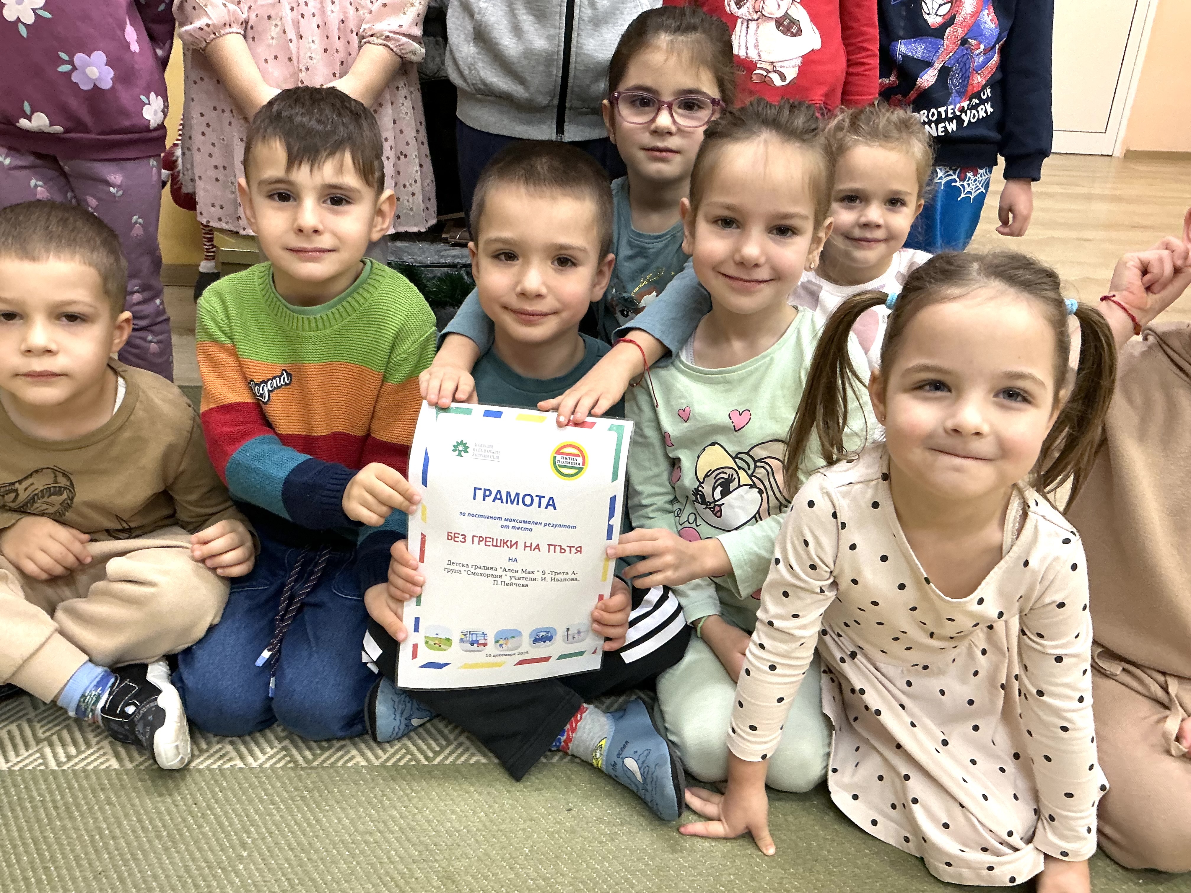 С постигнати максимални резултати децата бяха заслужено наградени с грамоти, доказвайки, че безопасността на пътя е важна и добре усвоена тема.