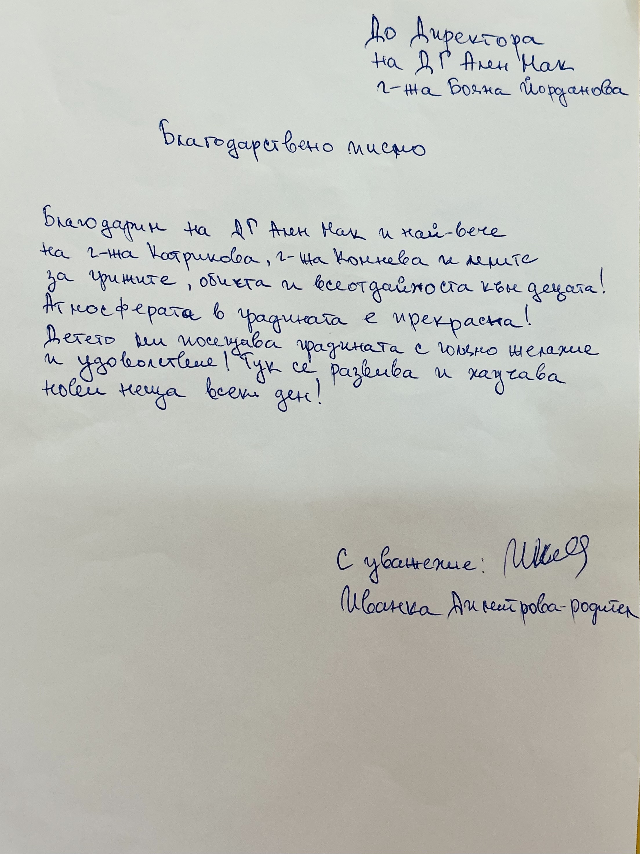 3. Благодарствено писмо към екипа на група "Многознайковци"