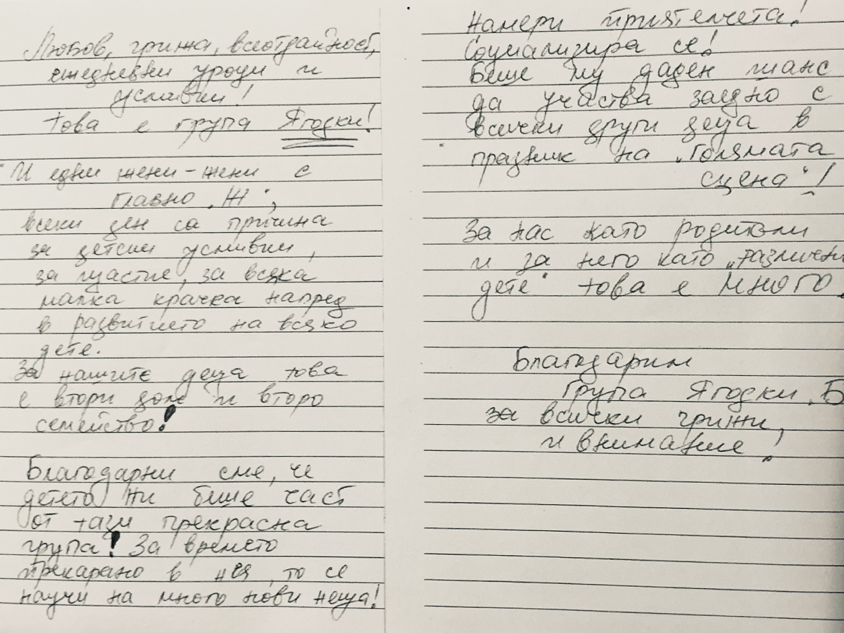 Благодарствено писмо към група "Ягодки"