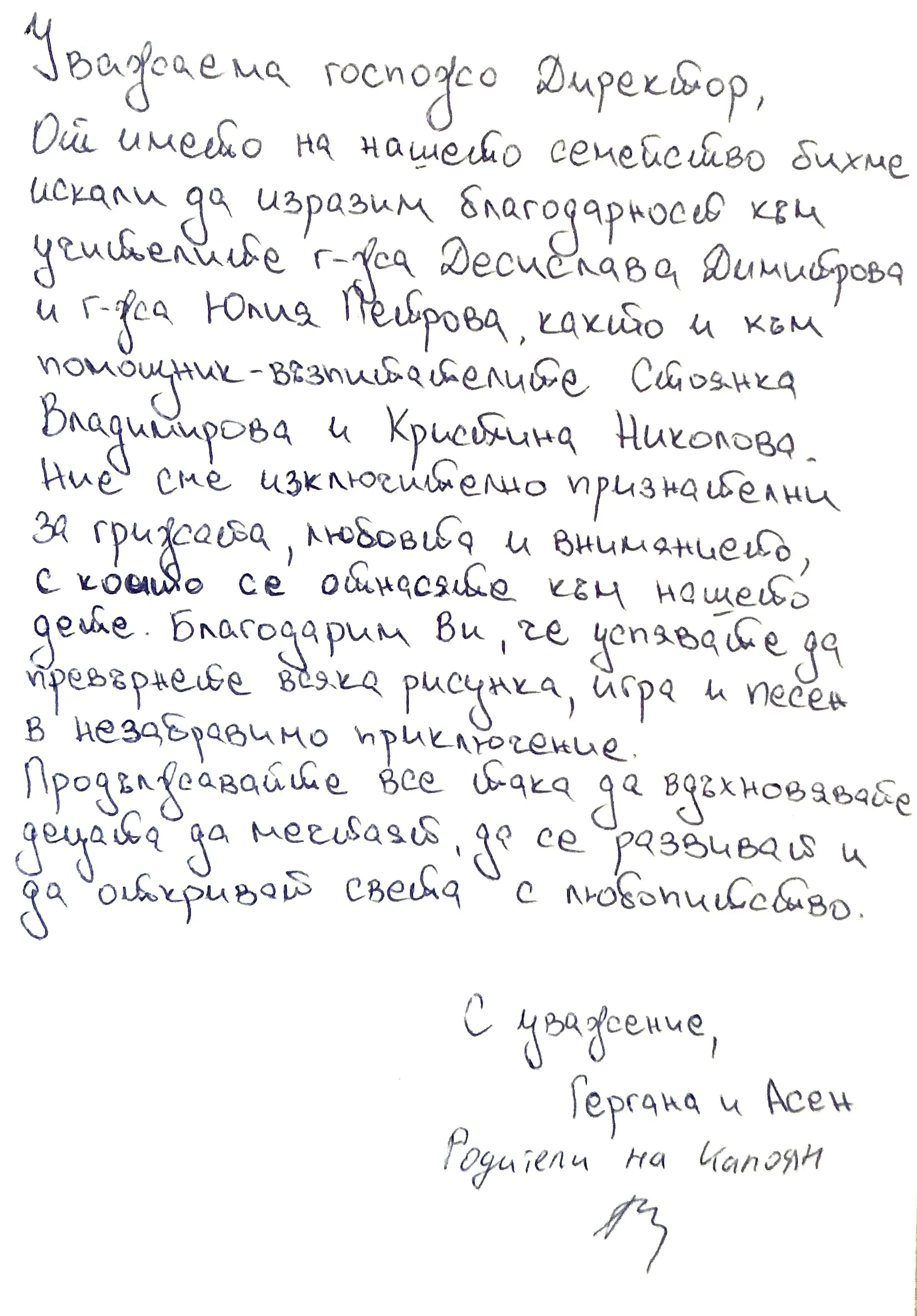3. Благодарствено писмо към II Б група "Смехурковци"