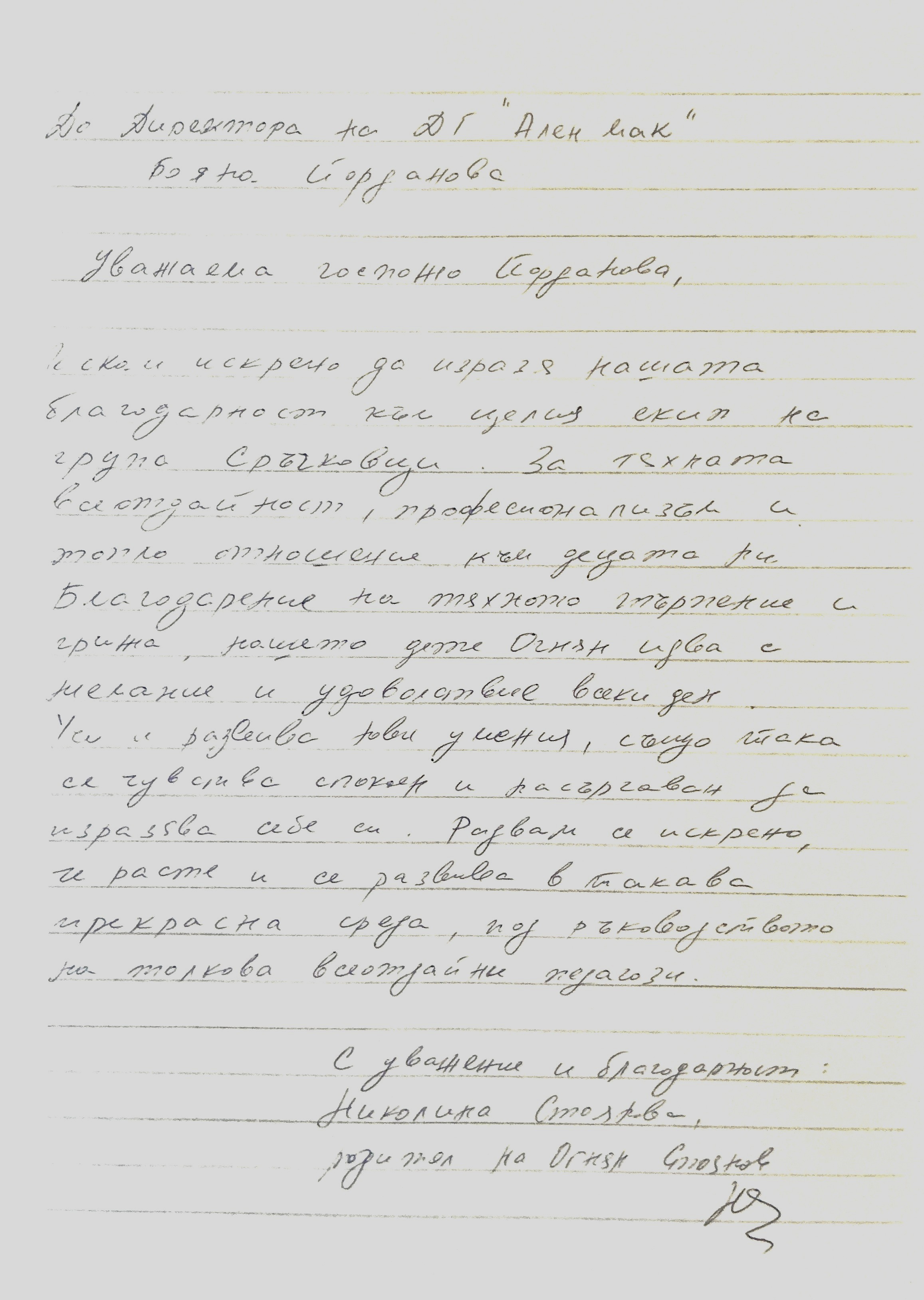 3. Благодарствено писмо от родител към III Б група "Сръчковци"