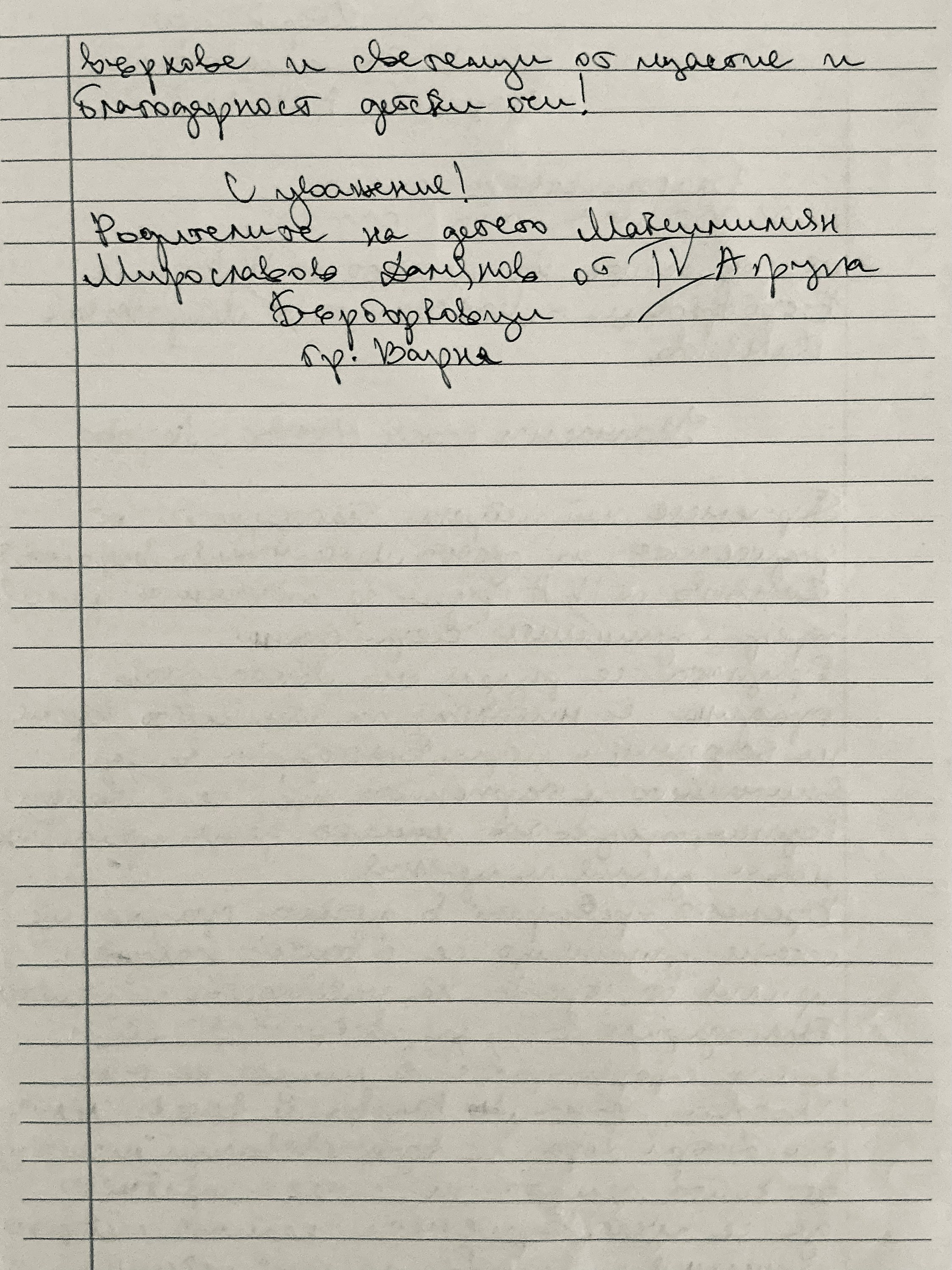 3. Благодарствено писмо от родители на дете от IV A група