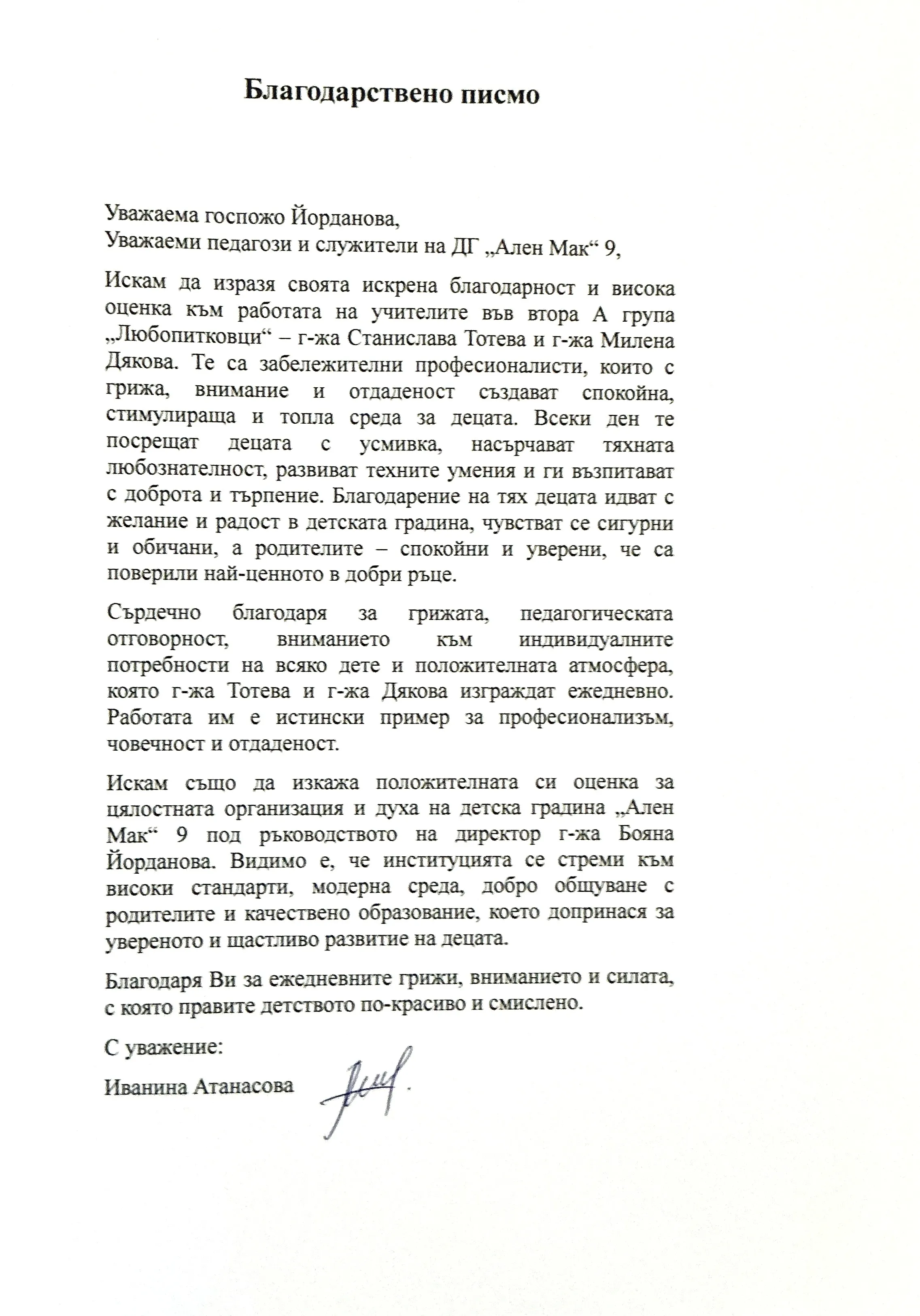 3. Благодарствено писмо за група "Любопитковци"