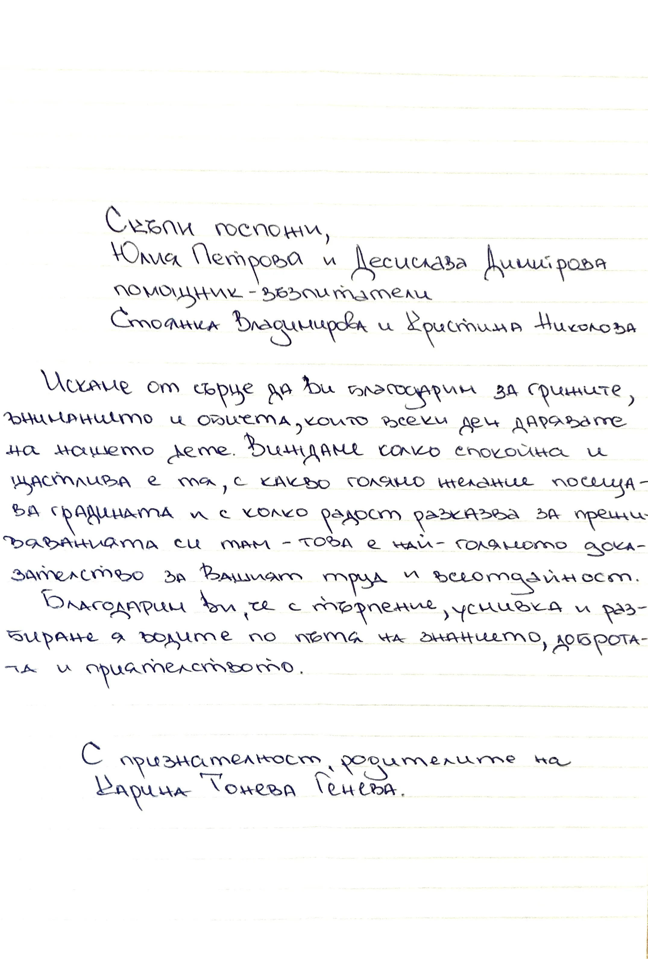 3. Благодарствено писмо за II Б група "Смехурковци"