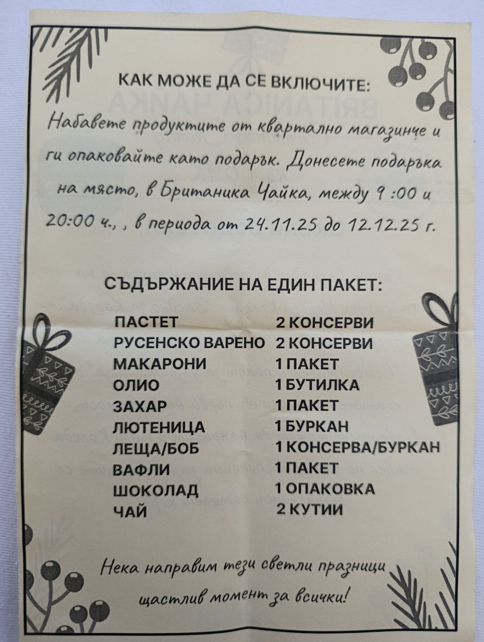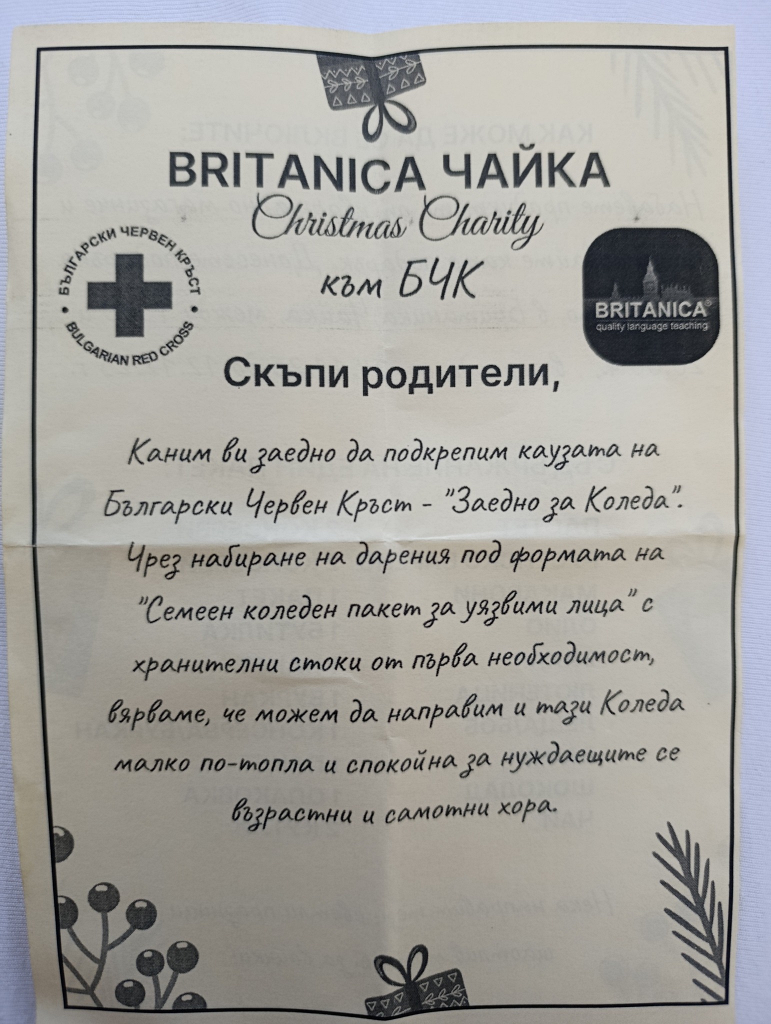 На 25.11.2025 г. ни гостуваха три дами от BRITANICA Чайка, които представиха пред децата коледната благотворителната кауза на Български Червен Кръст “Заедно за Коледа”.