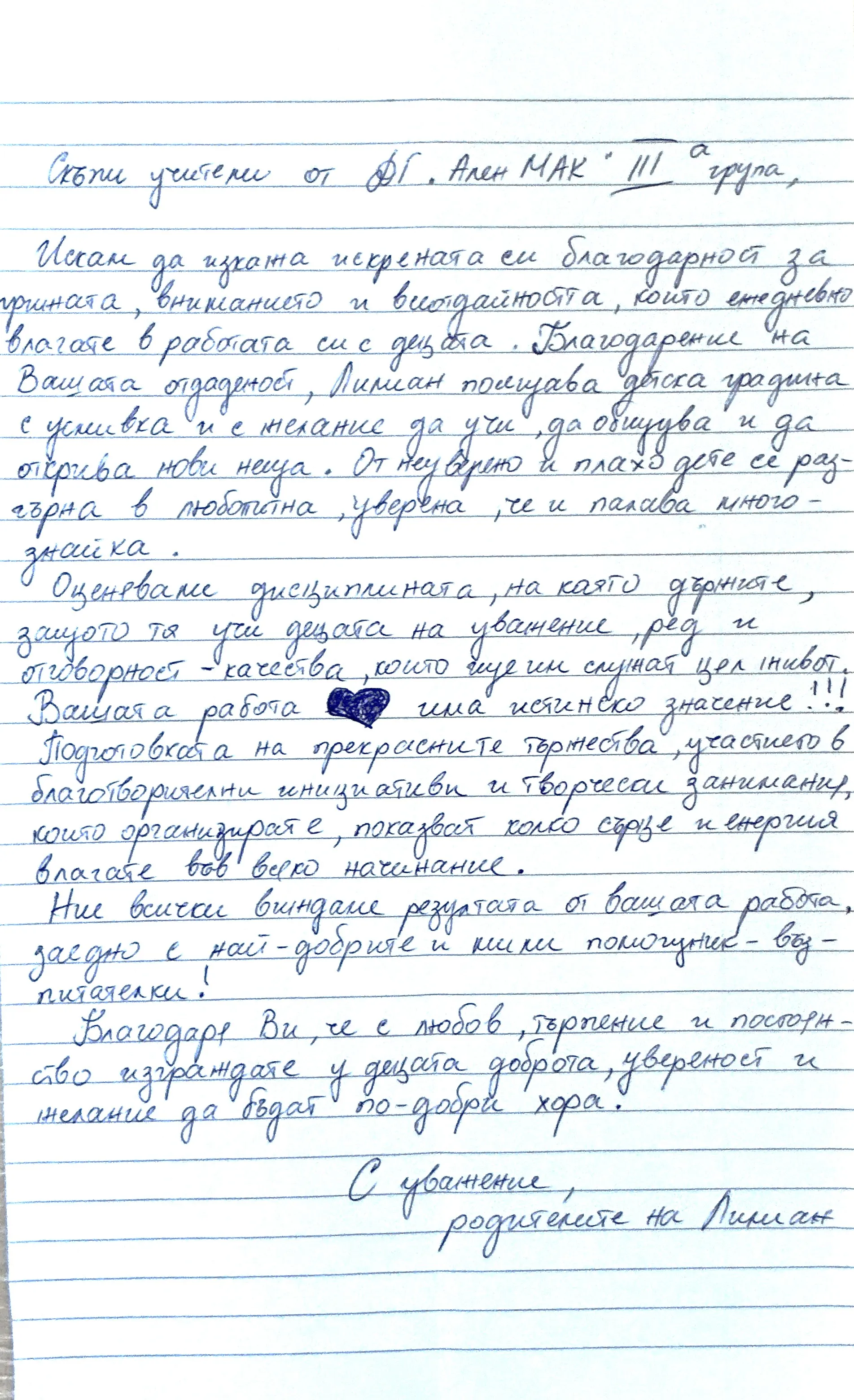 3. Искрена благодарност към екипа на III А група "Смехорани"