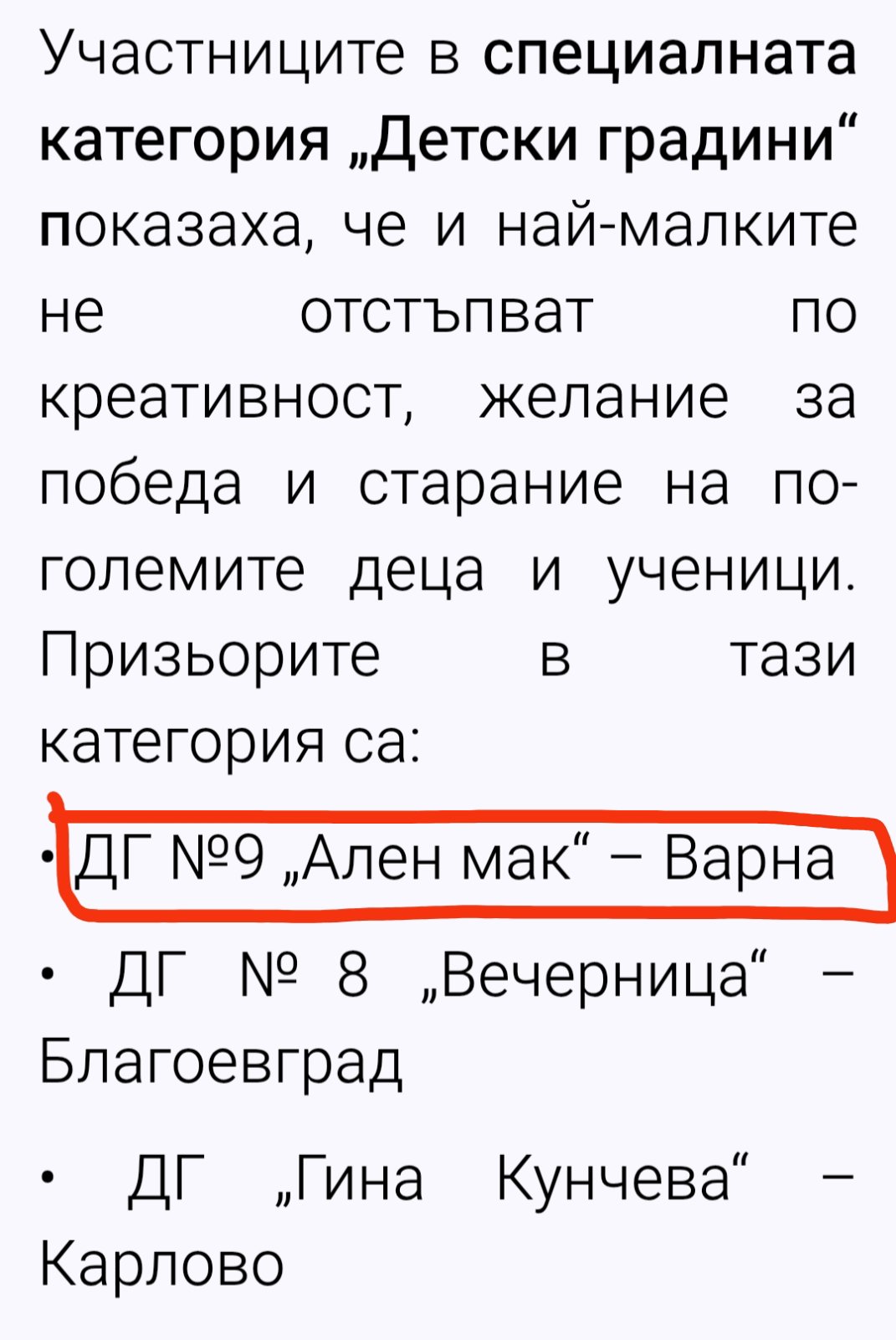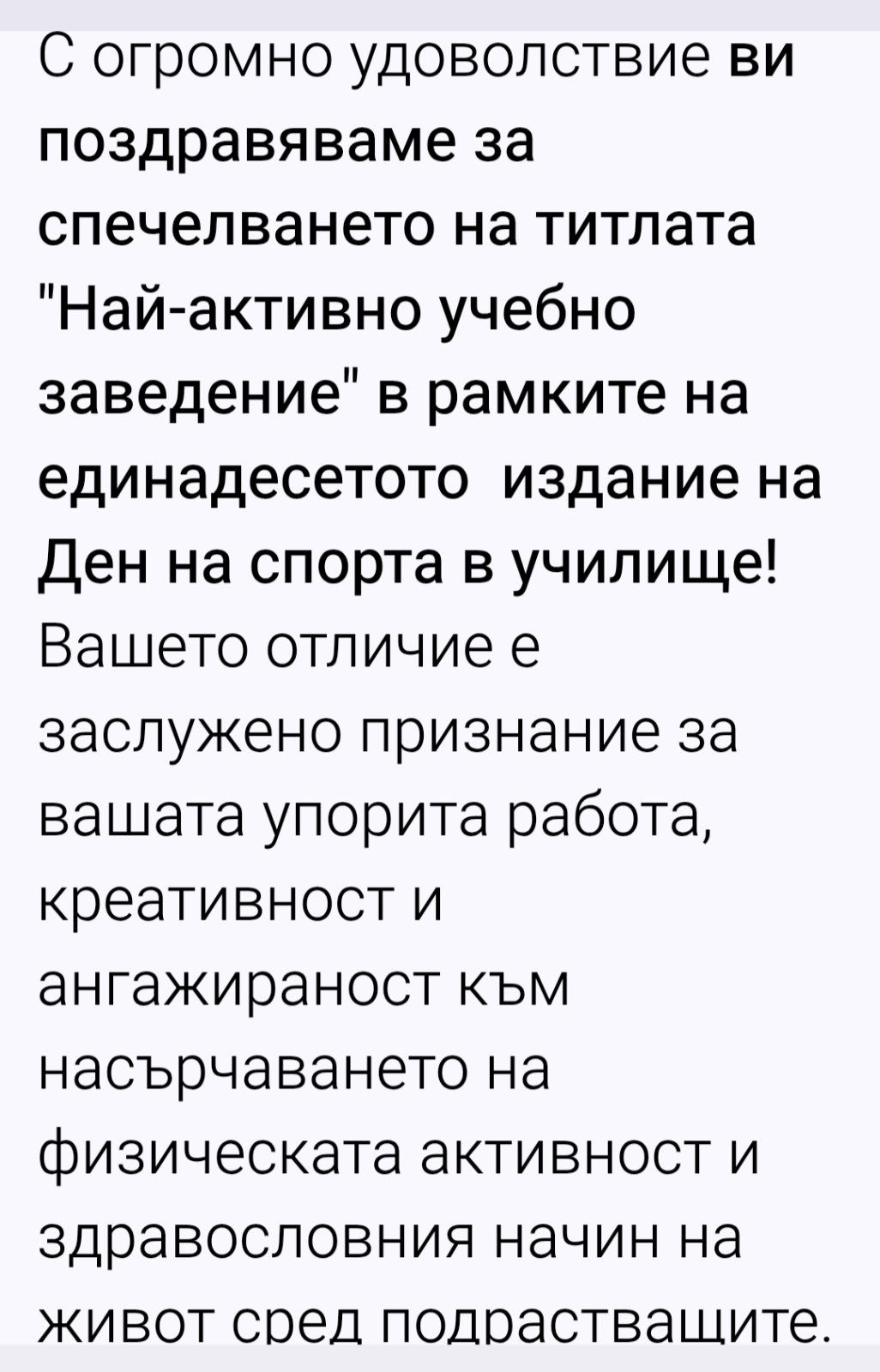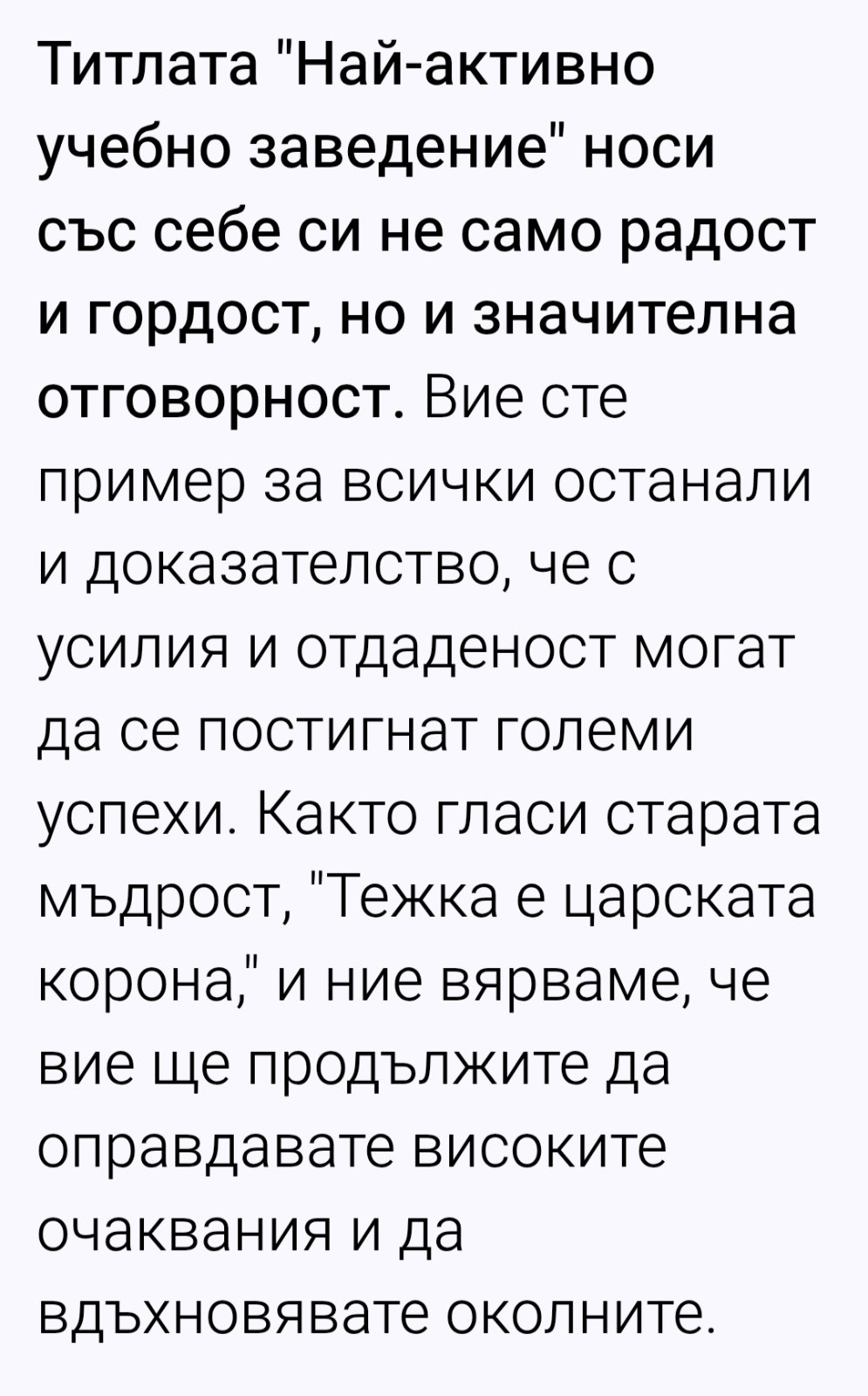 Успехът е резултат от съвместните усилия и отдаденост на ръководството, колектива, родителите, децата и нашите партньори.