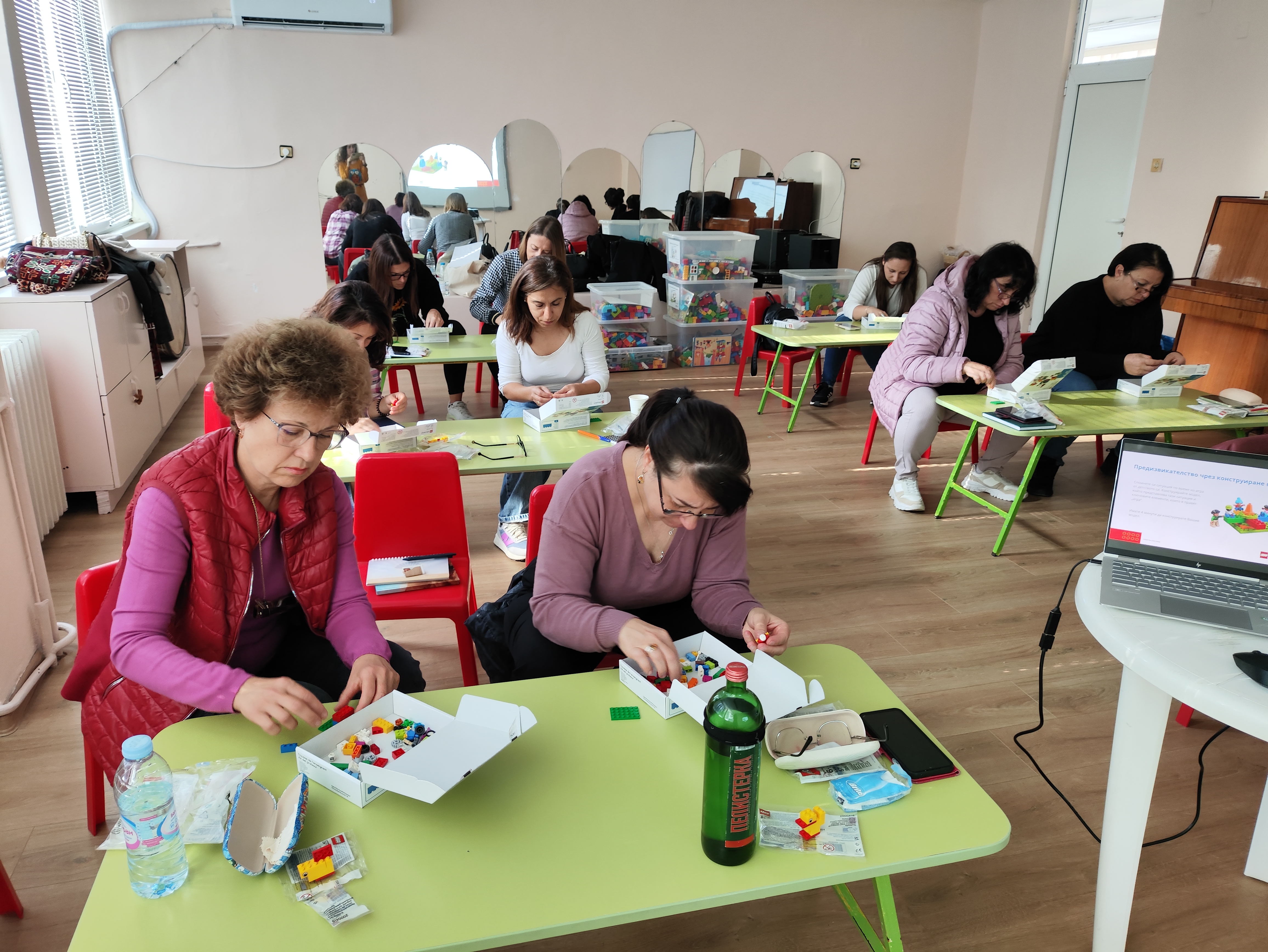 Във връзка с предстоящото откриване на LEGO кабинет в детската градина в съботния ден част от педагогическия екип присъства на обучение на тема “Социално и емоционално развитие и езикова култура с LEGO Education”, организирано от Център за творческо обучение.