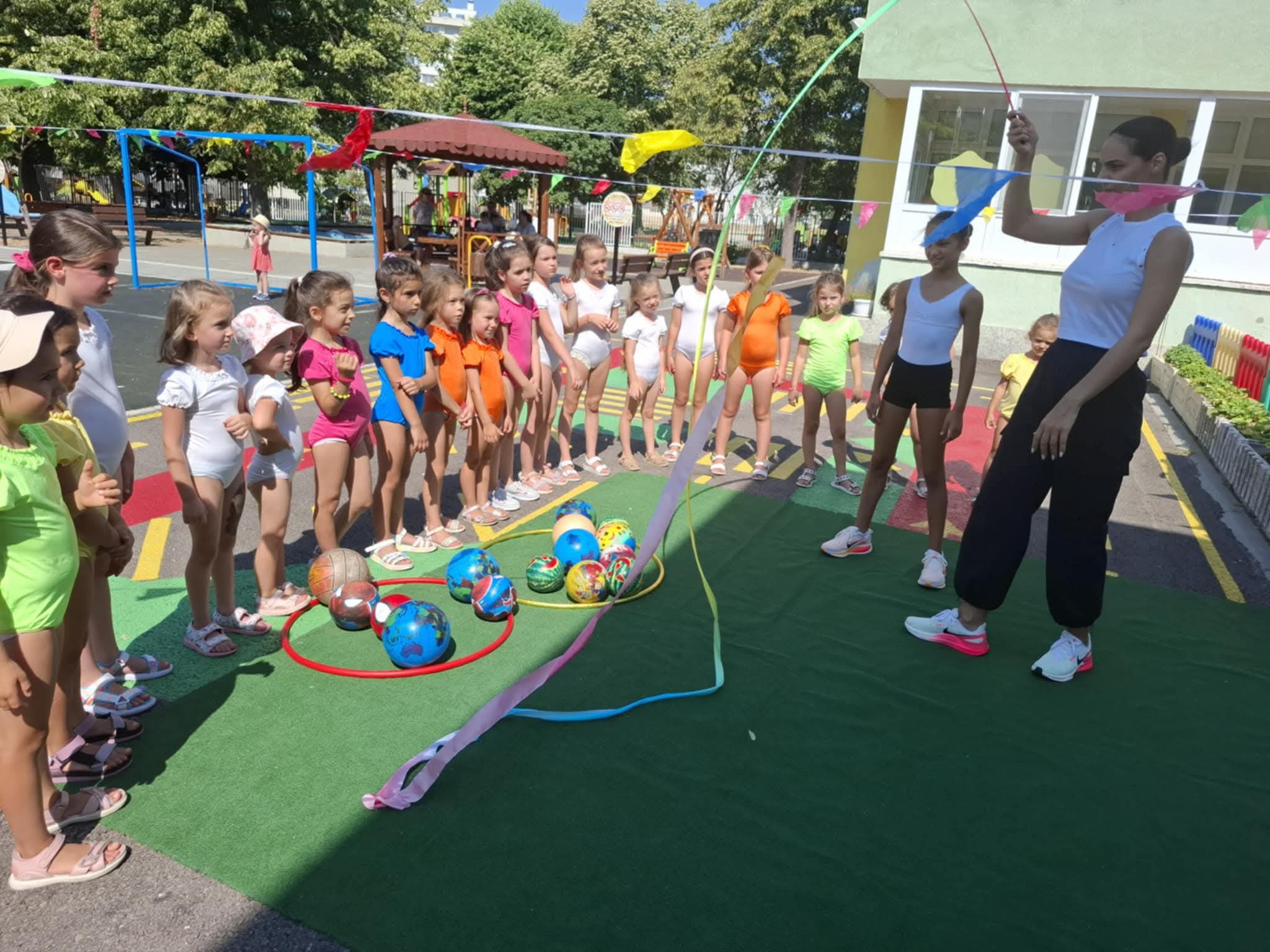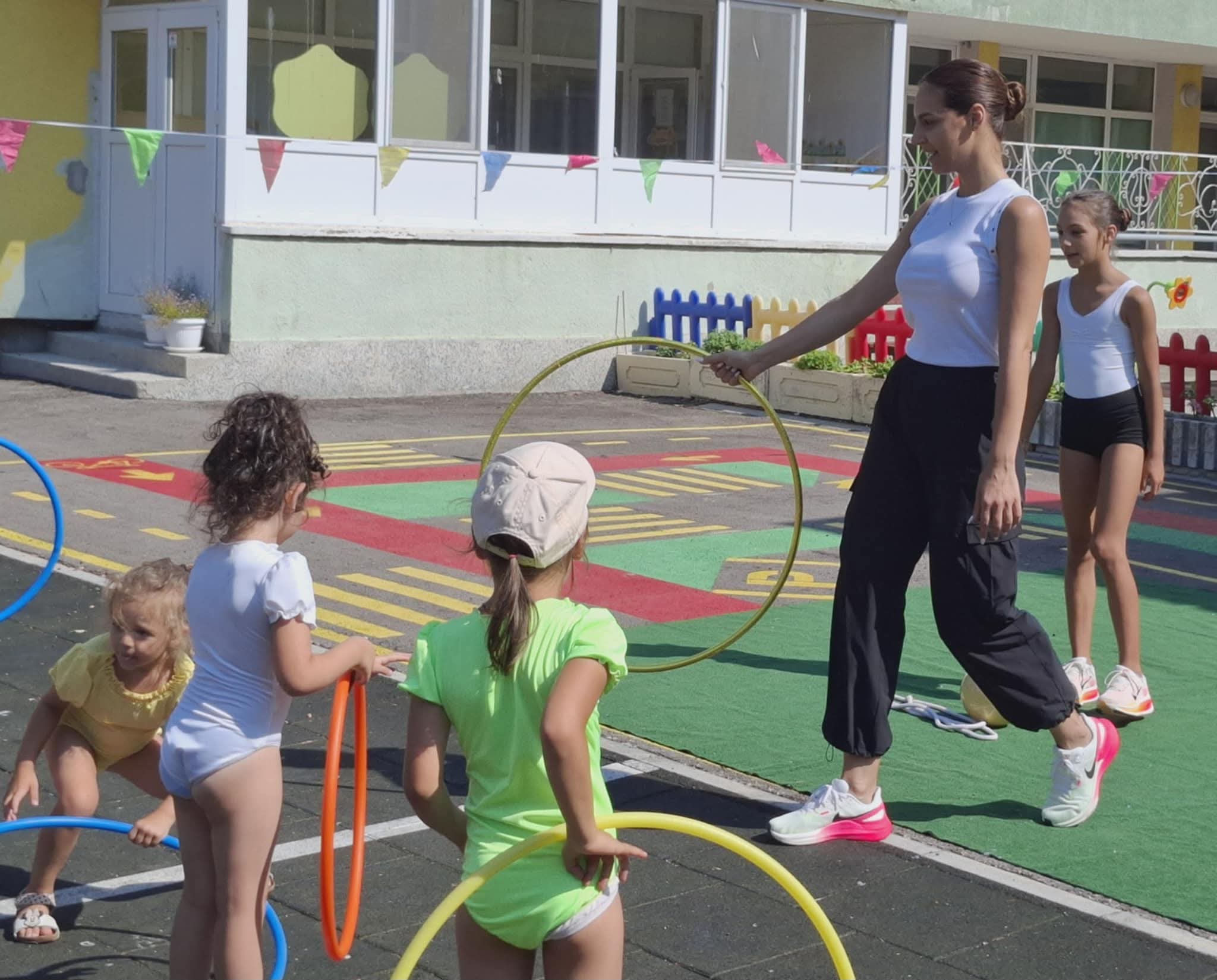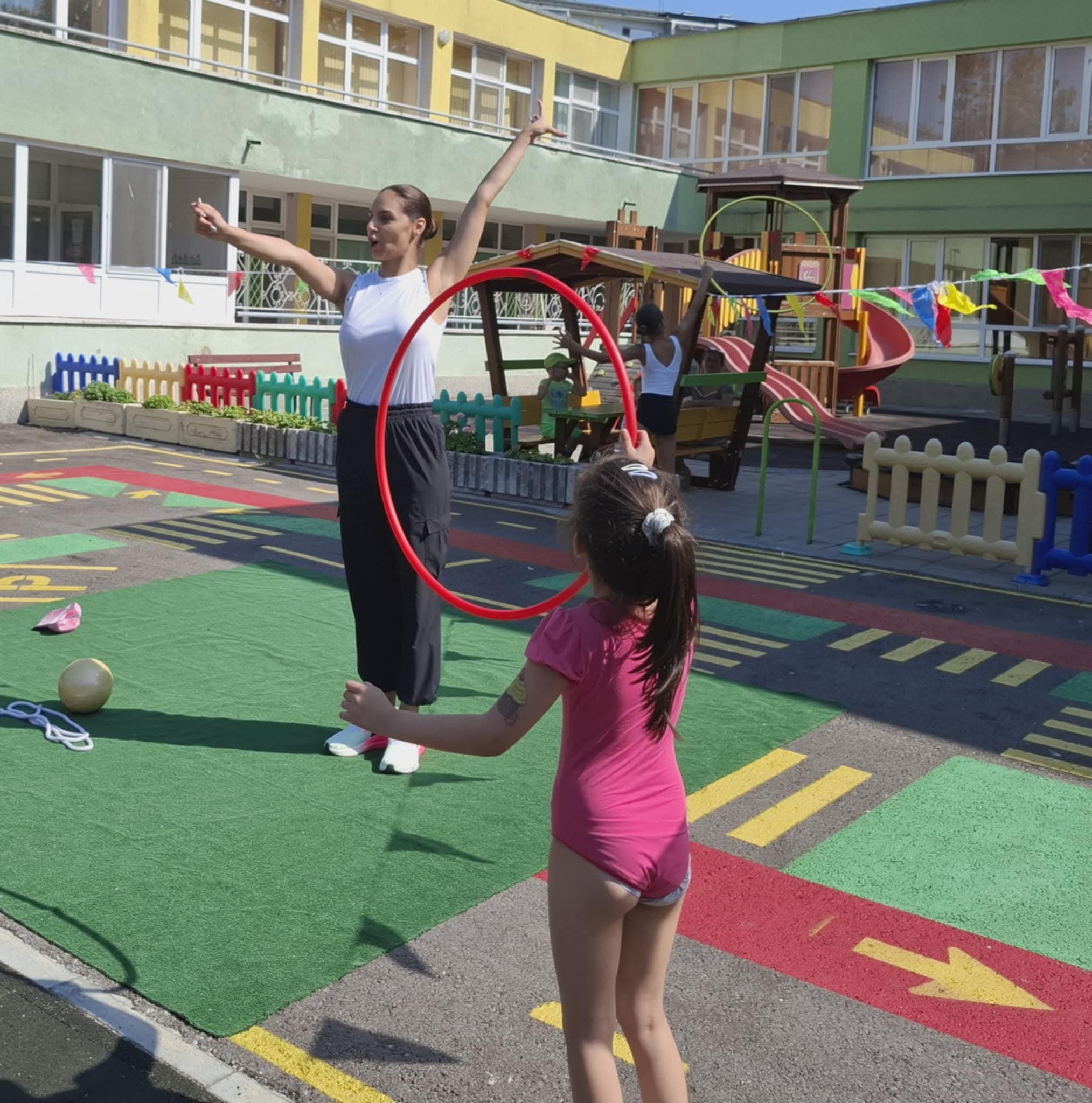 Децата от ДГ 9 “Ален мак” присъстваха и участваха в демонстрации от истински шампион на България – Владислава Танчева от Клуб по художествена гимнастика “Черно море” и нейната дъщеря Йони показаха изящество и финес. Разкриха пред децата красотата на този спорт, донесъл много гордост и световна слава за България.