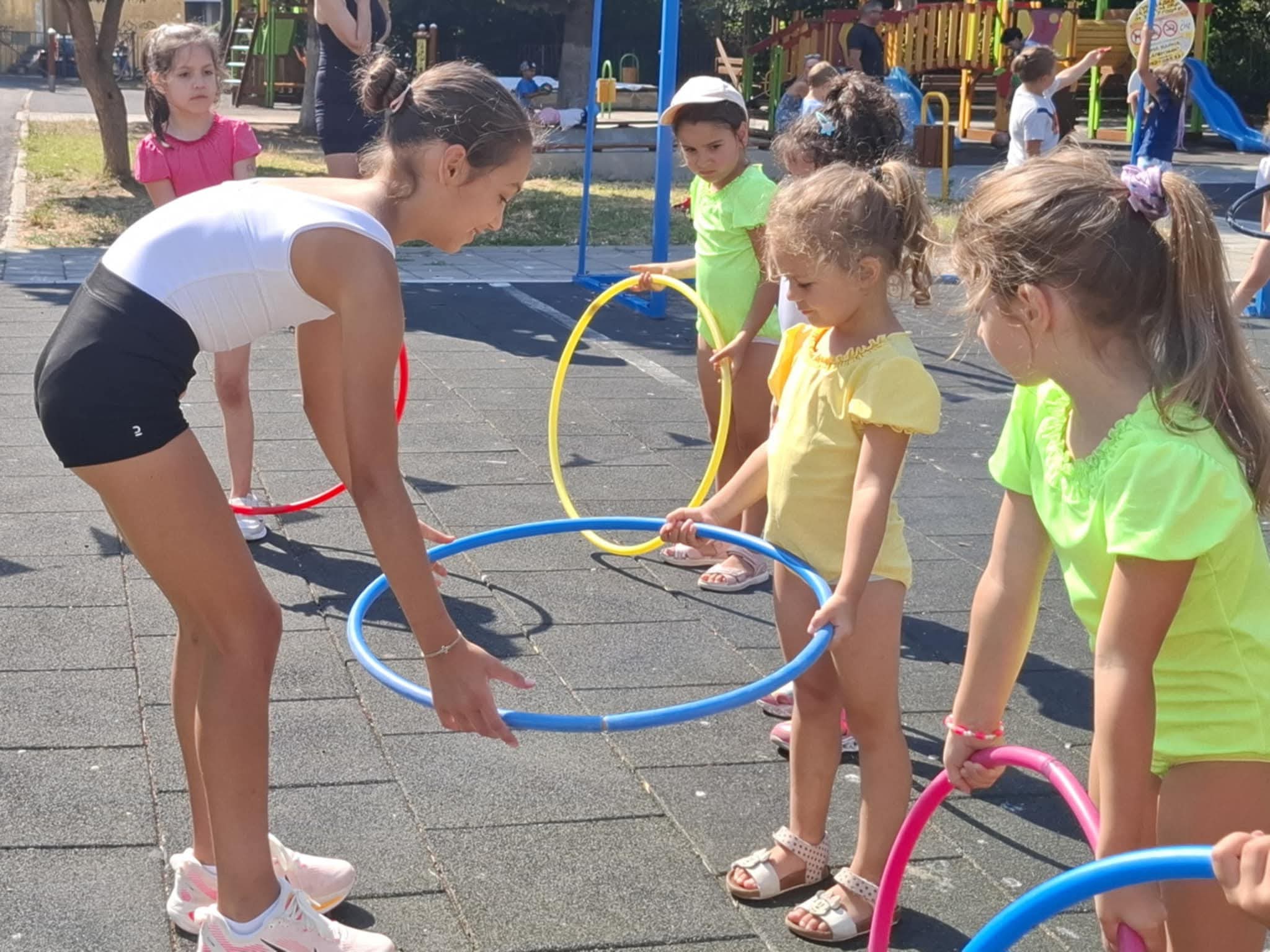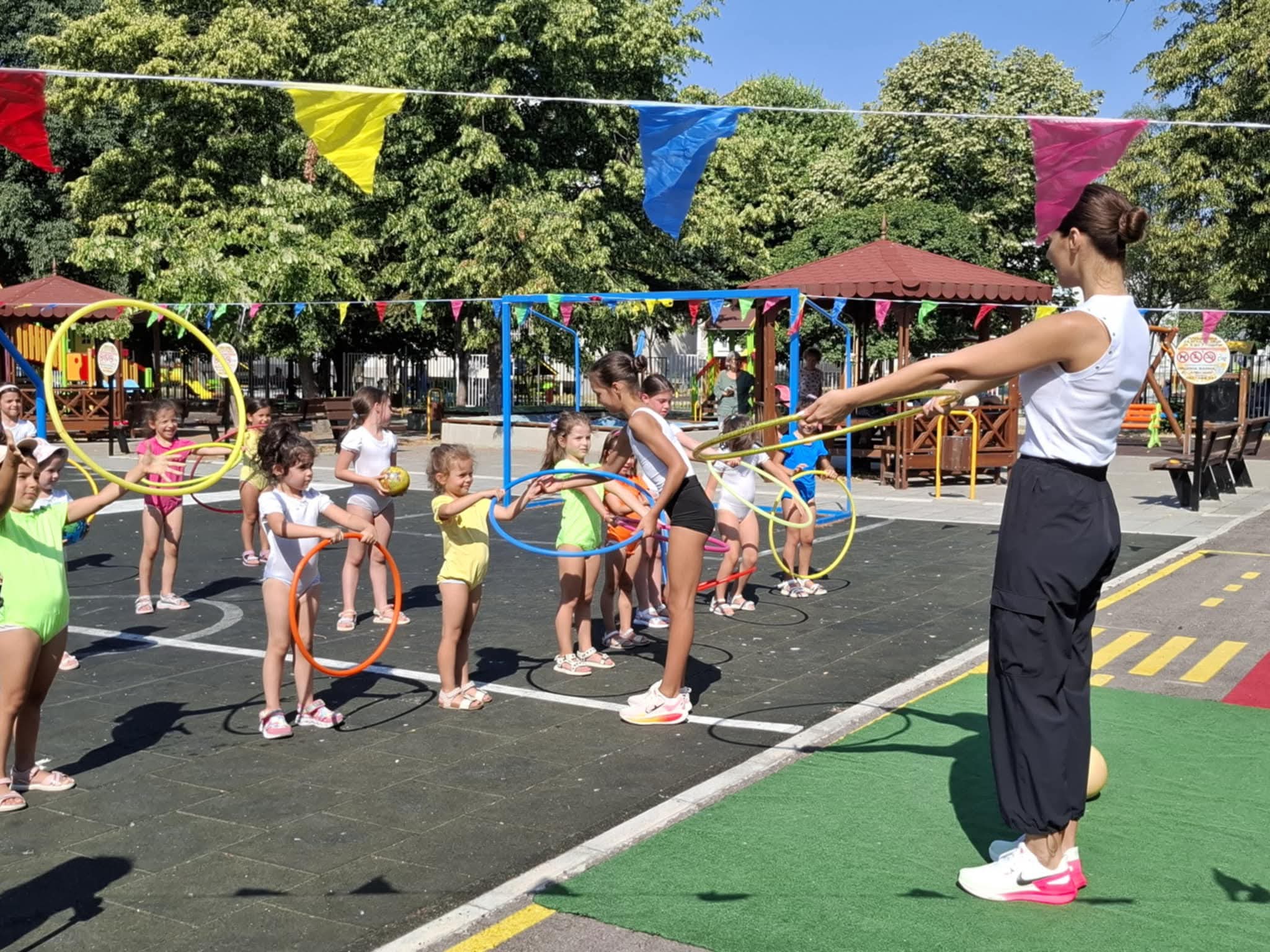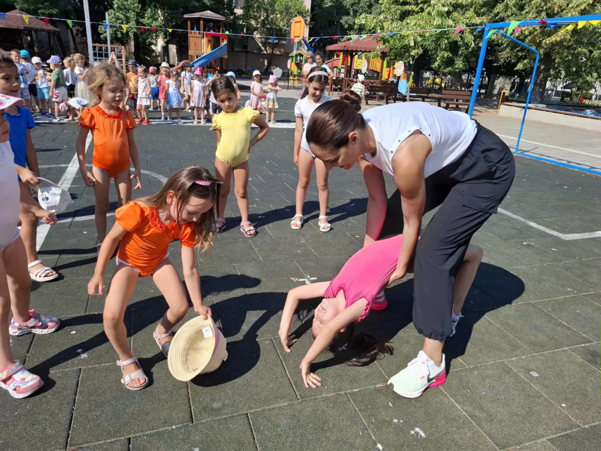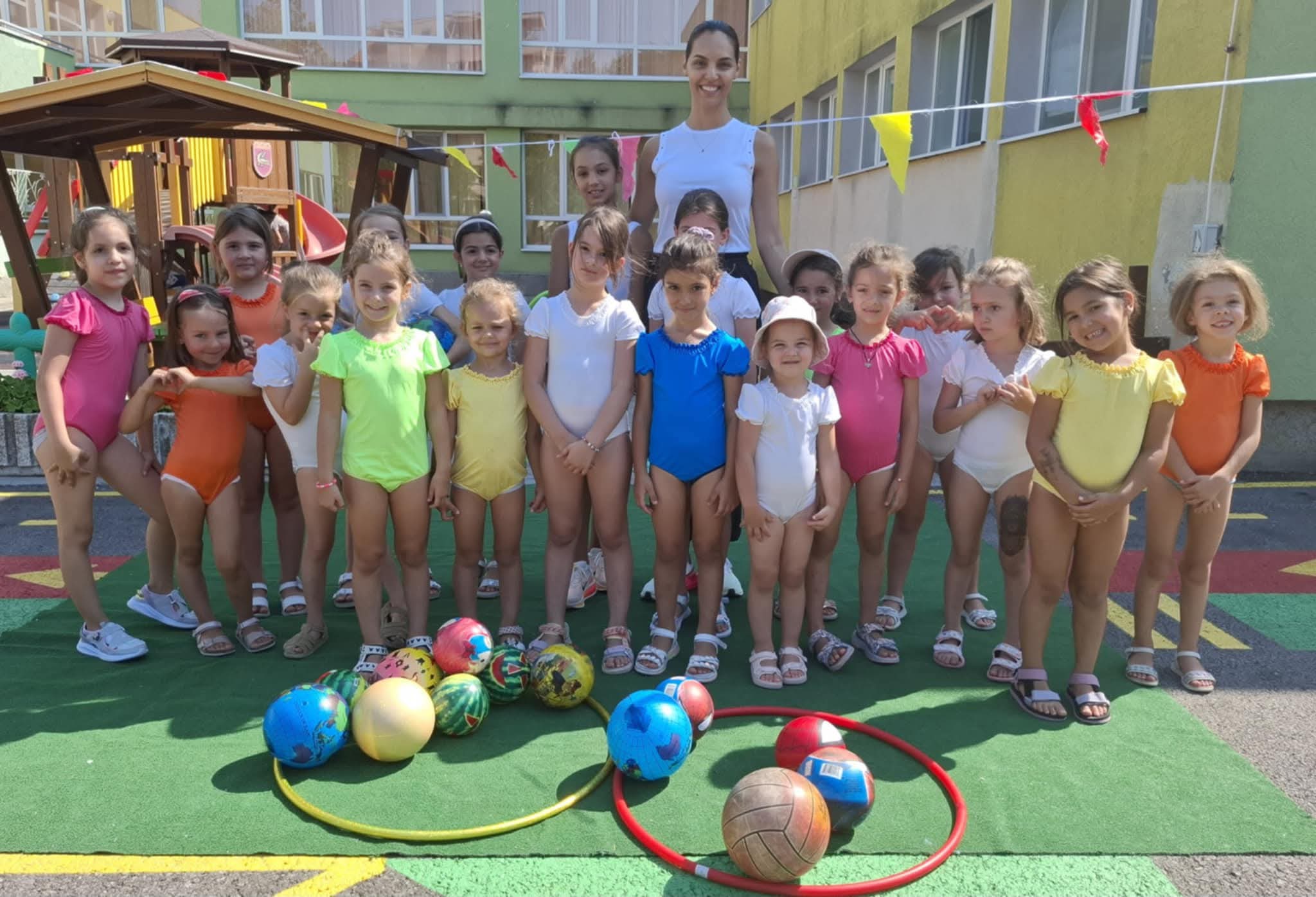 Децата от ДГ 9 “Ален мак” присъстваха и участваха в демонстрации от истински шампион на България – Владислава Танчева от Клуб по художествена гимнастика “Черно море” и нейната дъщеря Йони показаха изящество и финес. Разкриха пред децата красотата на този спорт, донесъл много гордост и световна слава за България.
