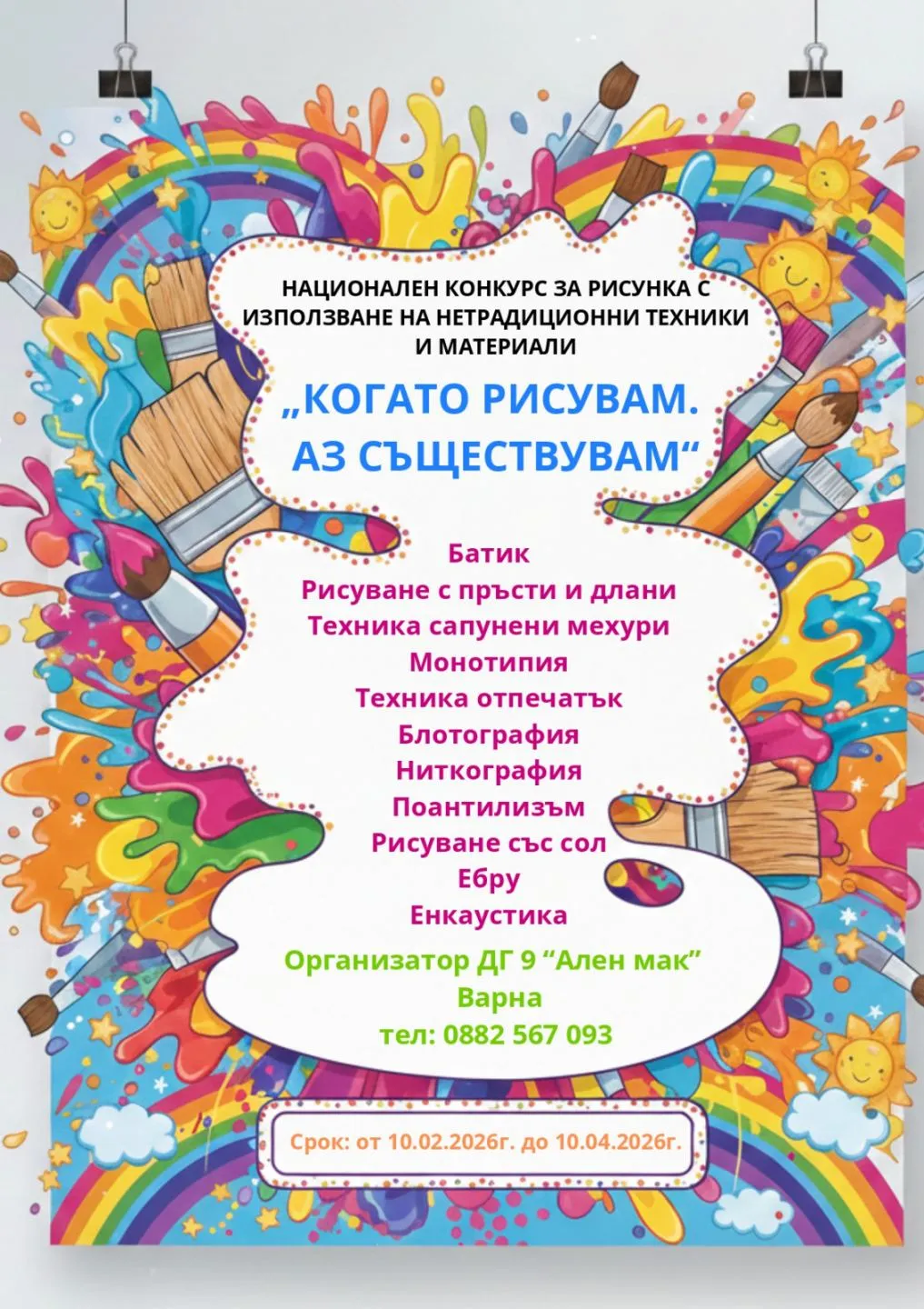 Детска градина “Ален мак” организира Национален конкурс за рисунка с използването на нетрадиционни техники и материали„КОГАТО РИСУВАМ. АЗ СЪЩЕСТВУВАМ“