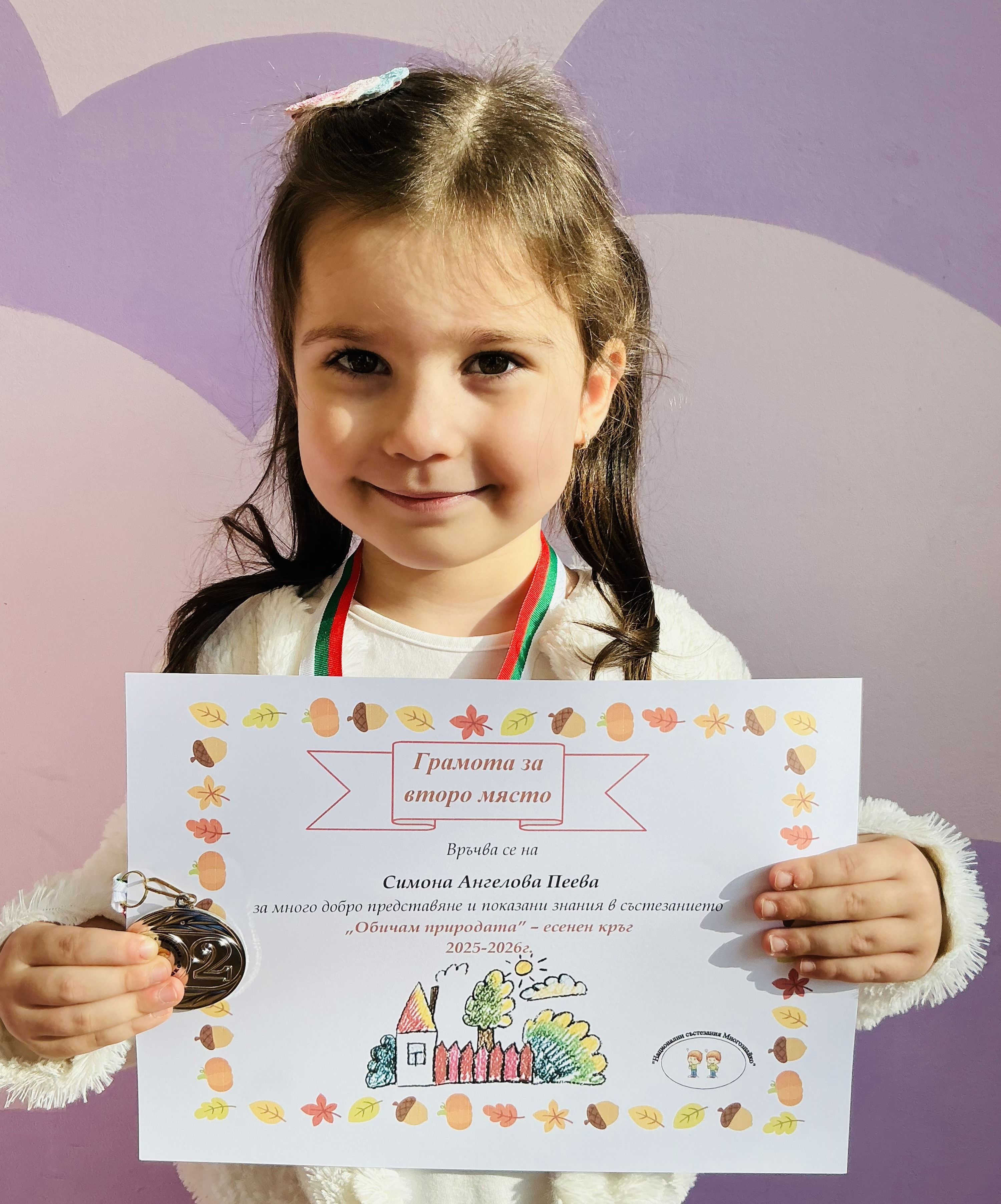 Децата от група “Смехурковци” взеха участие в националното състезание „Многознайко – Есен 2025“, което традиционно обединява любознателните и стремящи се към знания деца от цялата страна. Състезанието е създадено с цел да развива аналитичното мислене, речевите умения, наблюдателността и увереността на децата чрез забавни и образователни задачи.