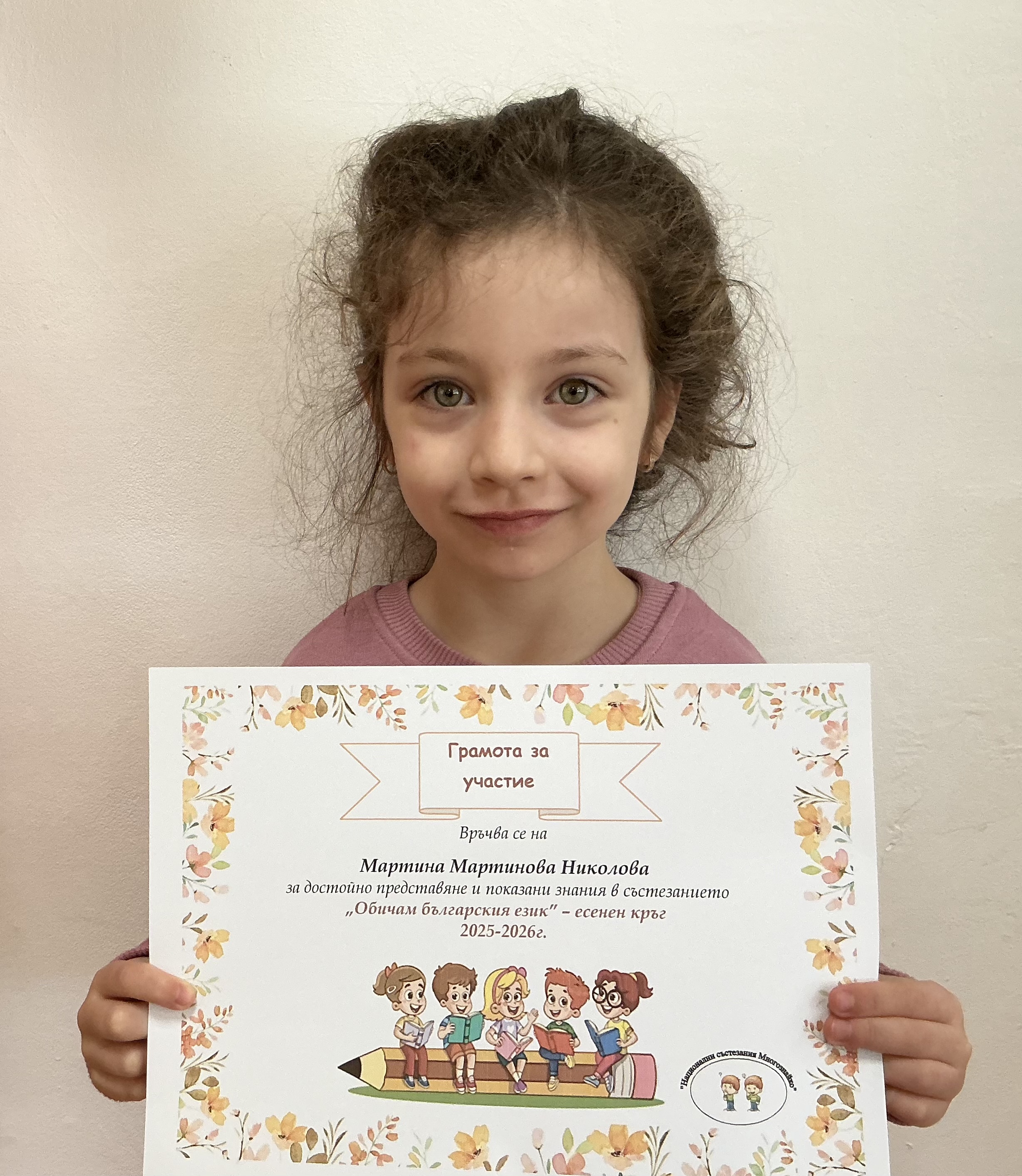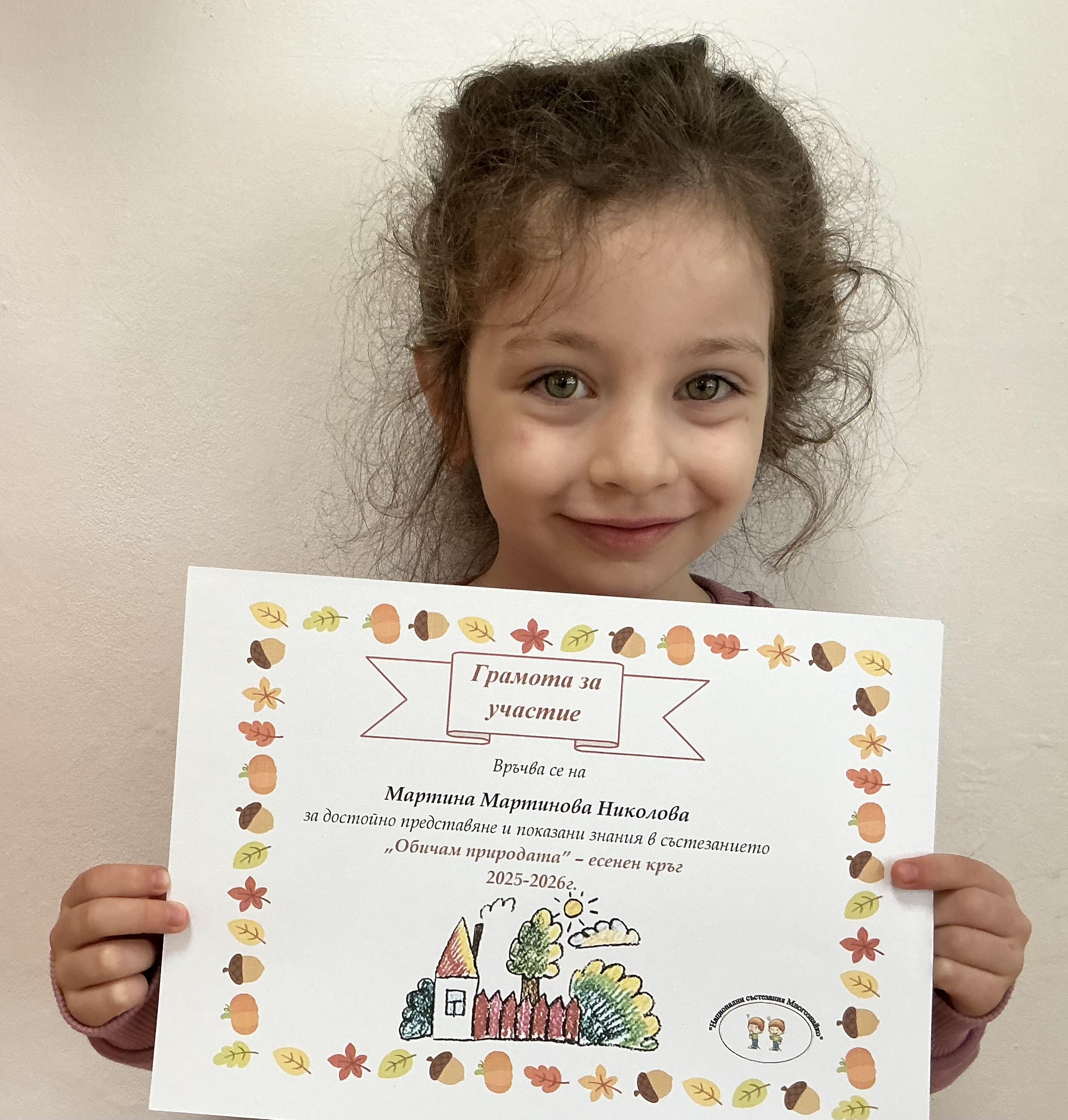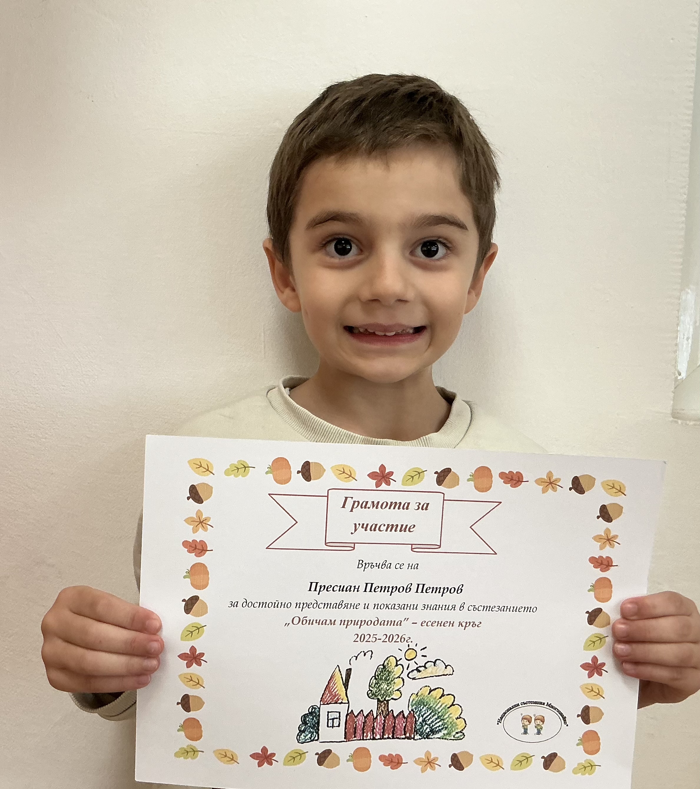 Децата от група “Сладури” взеха участие в националното състезание „Многознайко – Есен 2025“, което традиционно обединява любознателните и стремящи се към знания деца от цялата страна. Състезанието е създадено с цел да развива аналитичното мислене, речевите умения, наблюдателността и увереността на децата чрез забавни и образователни задачи.