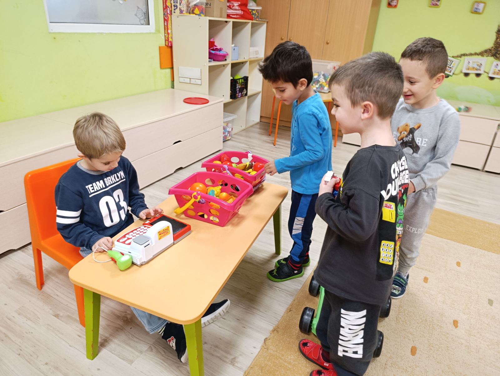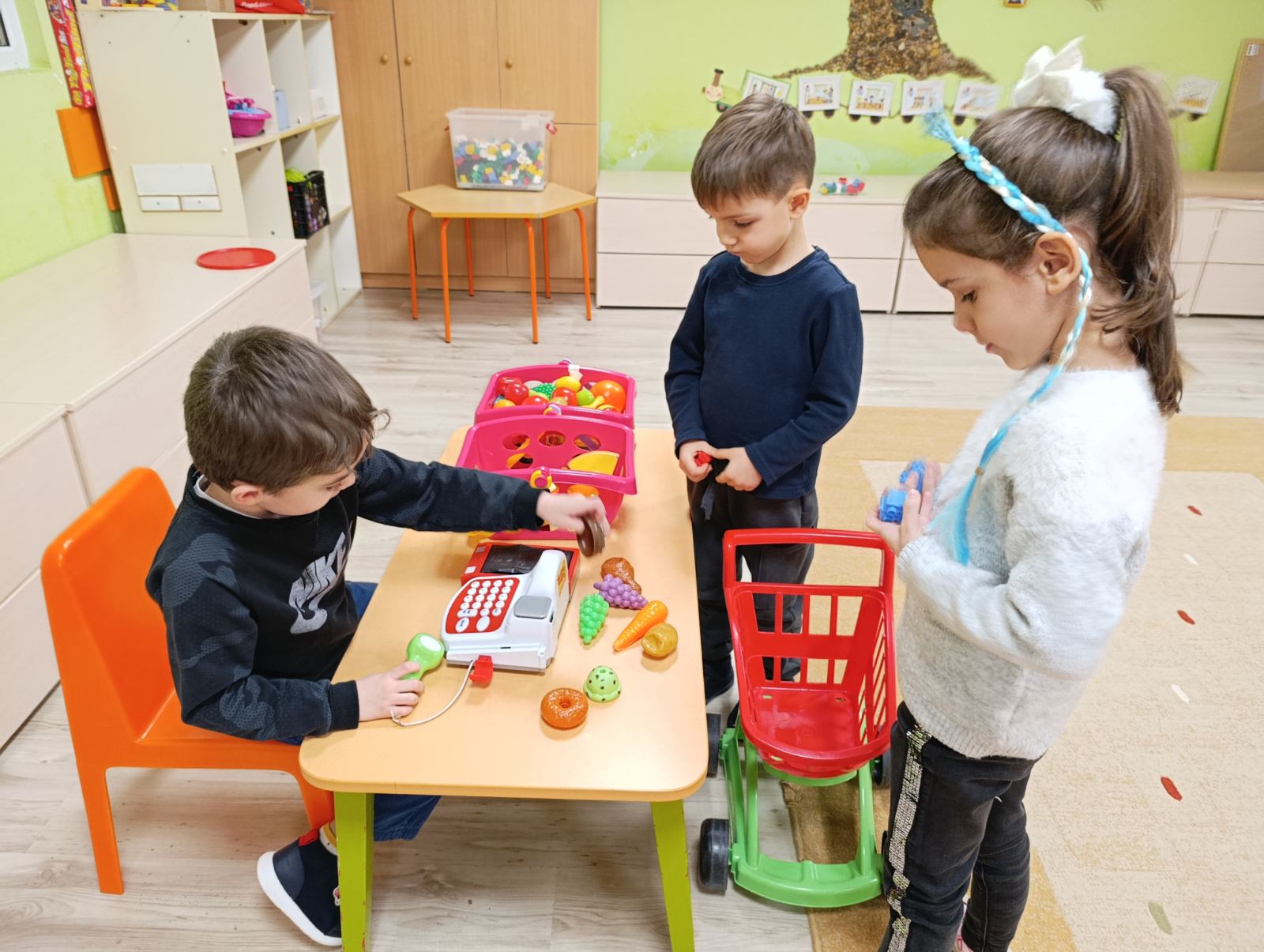 - Децата от третите групи участваха в образователно занимание по финансова грамотност на тема „Стоки и услуги“. Чрез игрови ситуации, беседа и нагледни примери те се запознаха с основните понятия за стоки и услуги и научиха как да ги различават в ежедневието си. Заниманието допринесе за формиране на начални икономически представи и развитие на умения за ориентиране в заобикалящия свят.