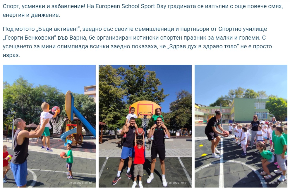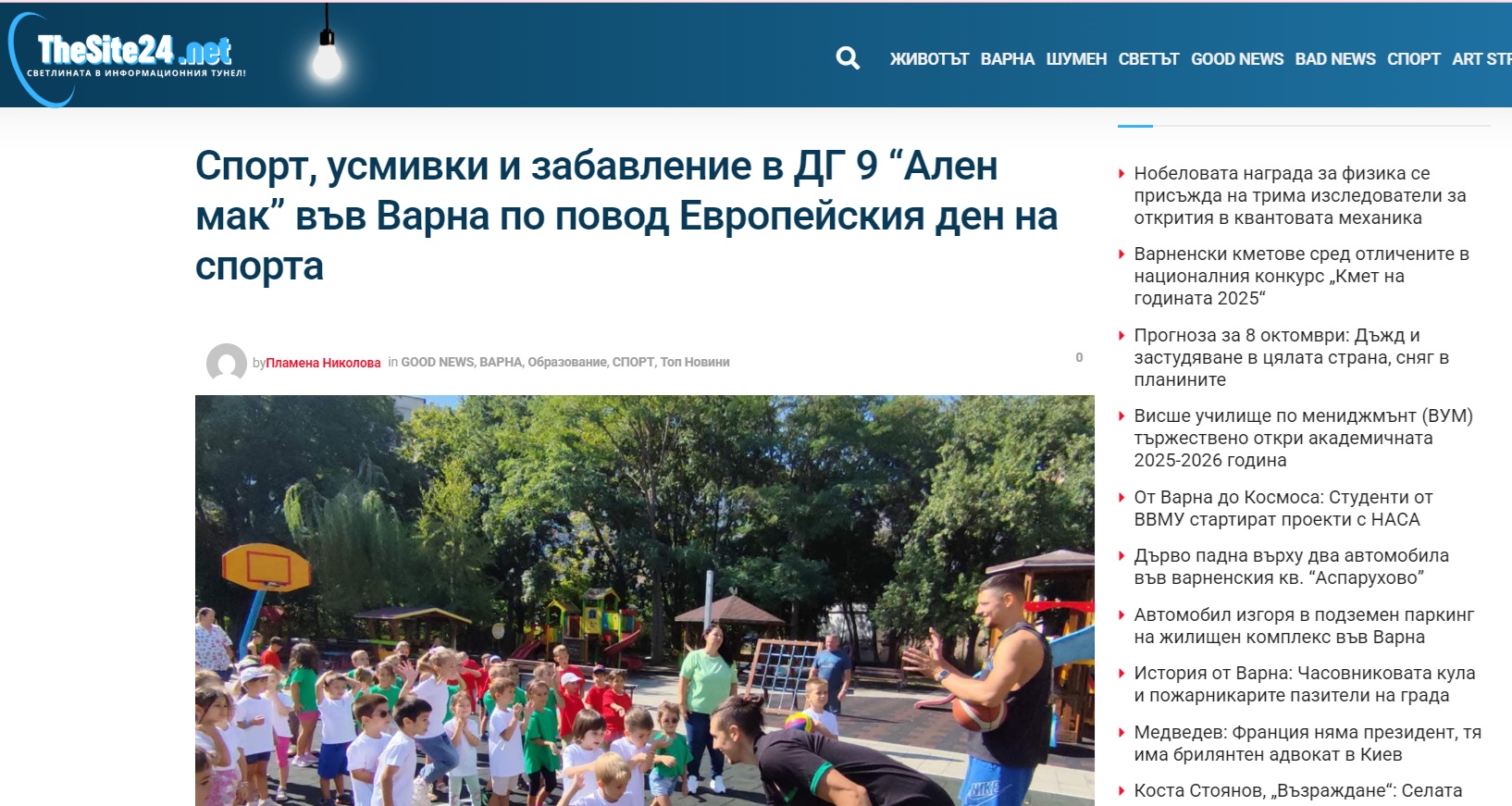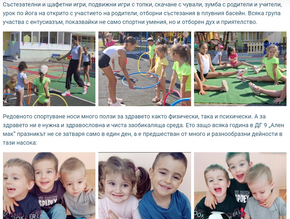 Спорт, усмивки и забавление в ДГ 9 “Ален мак” във Варна по повод Европейския ден на спорта