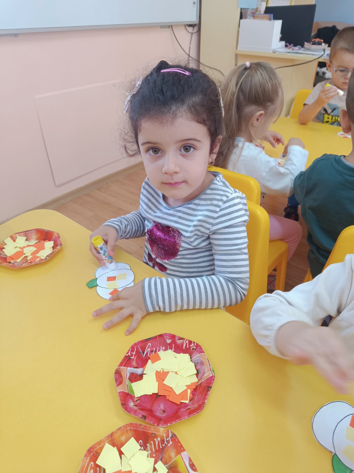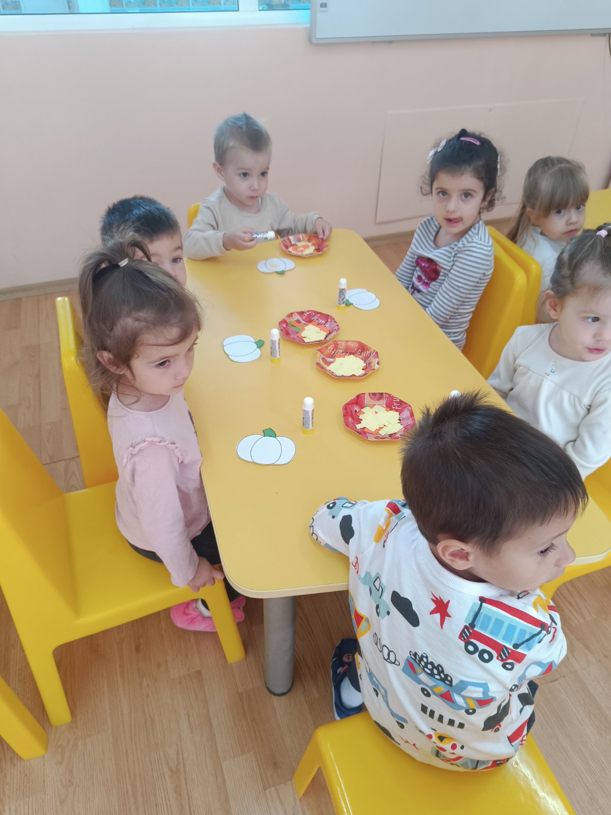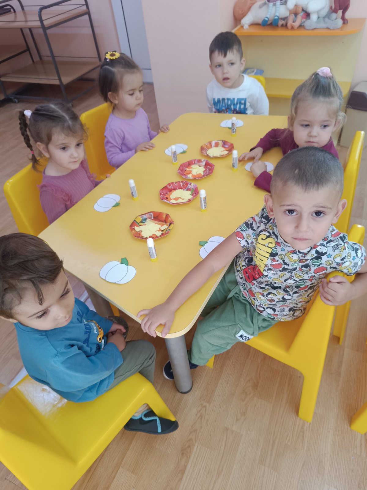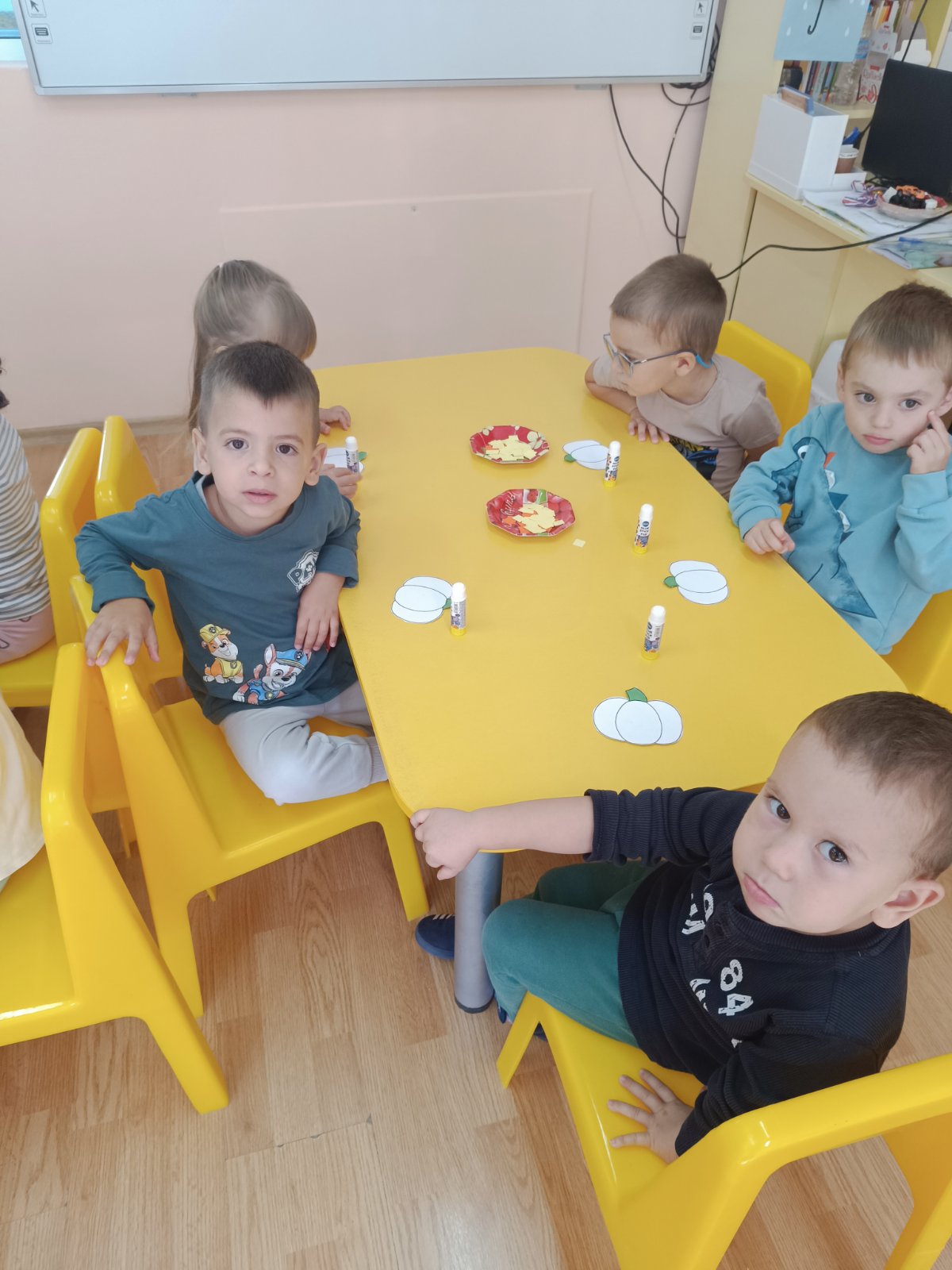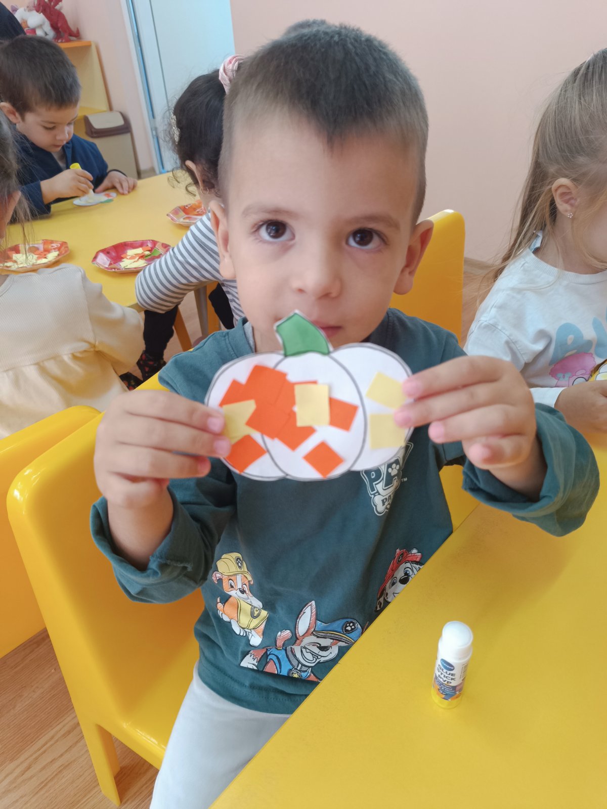 В този есенен ден децата от група ” Слънчовци ” с усмивки и добро настроение изработиха своите тикви.