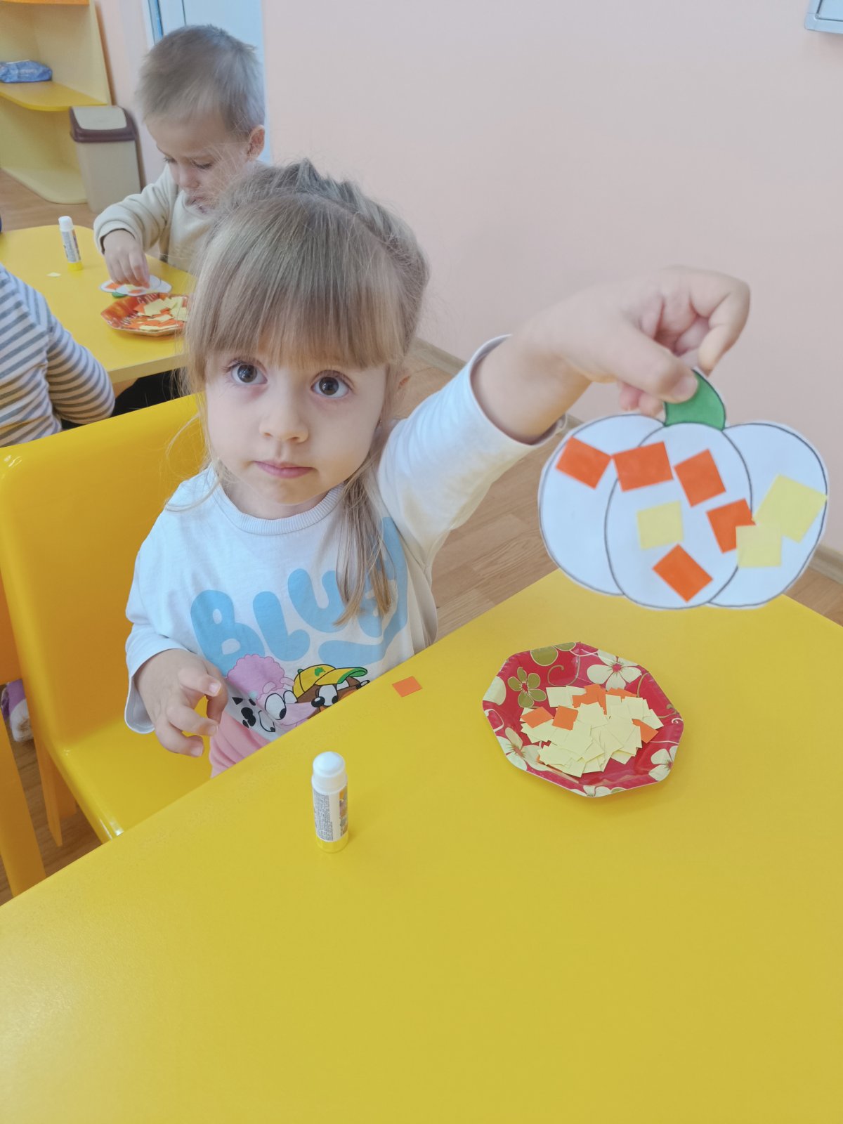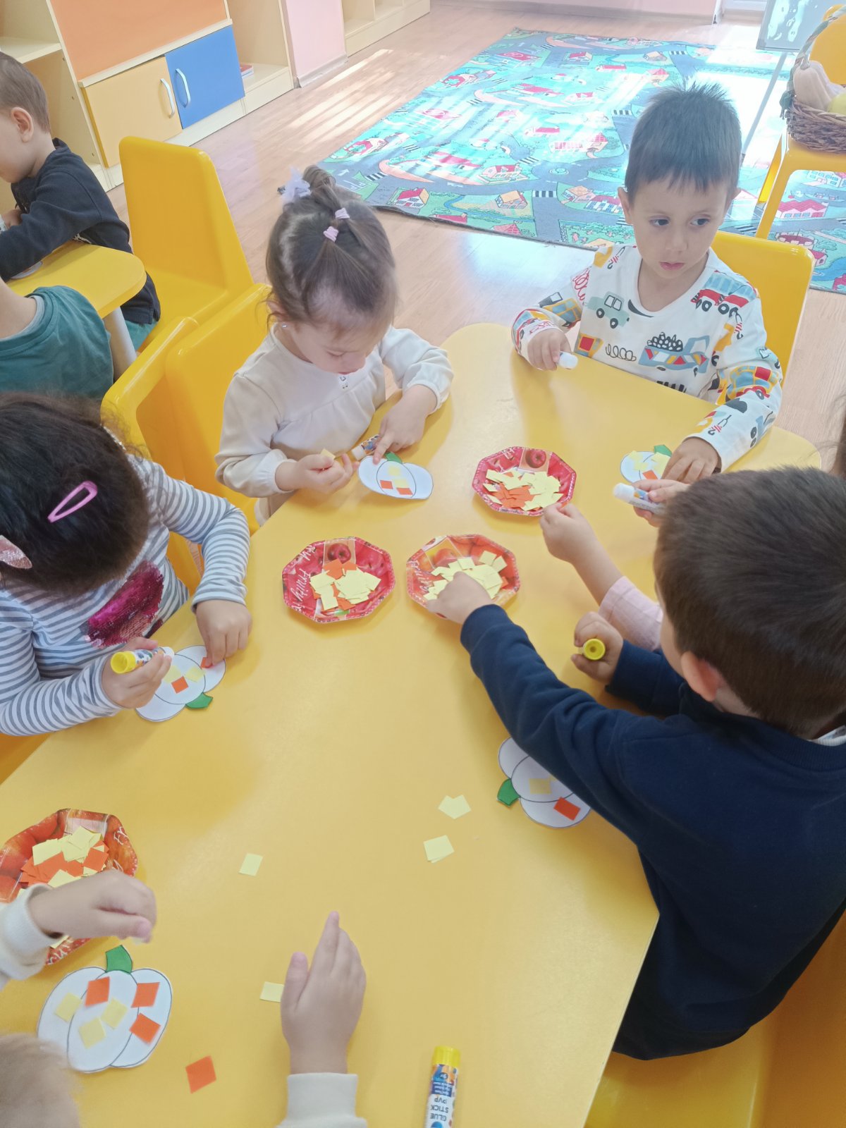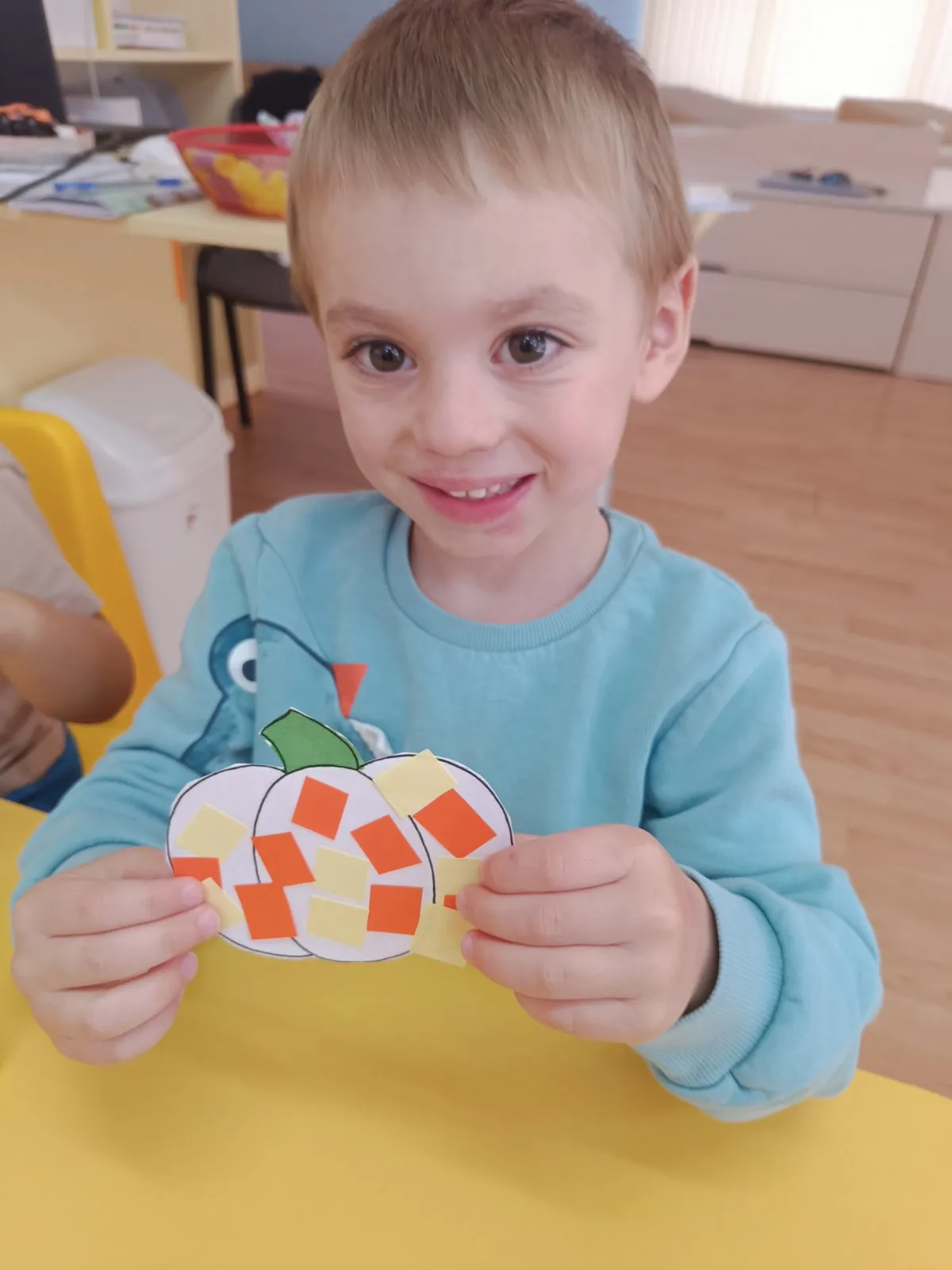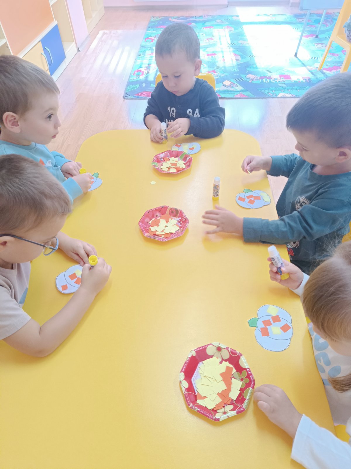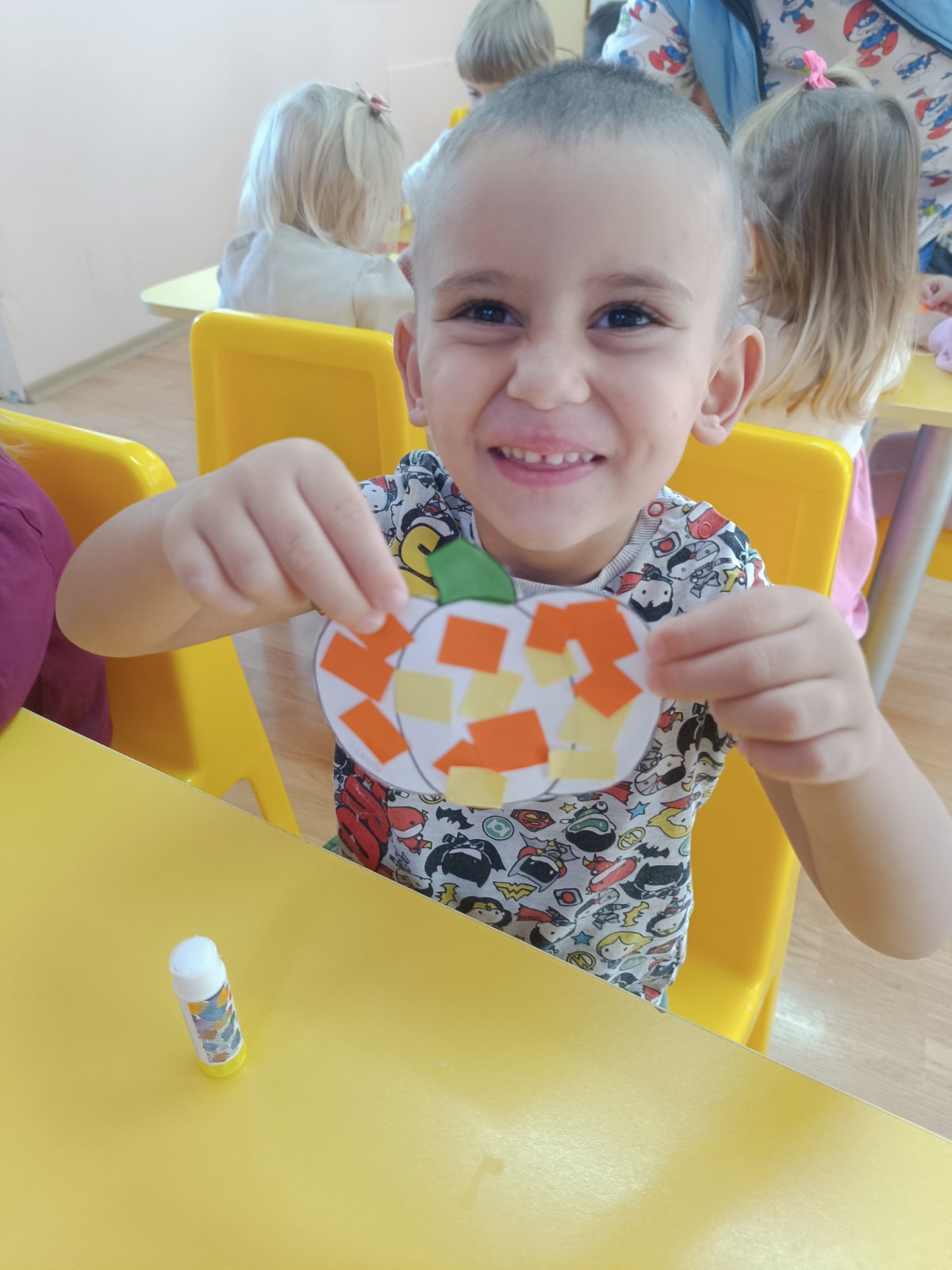 В този есенен ден децата от група ” Слънчовци ” с усмивки и добро настроение изработиха своите тикви.