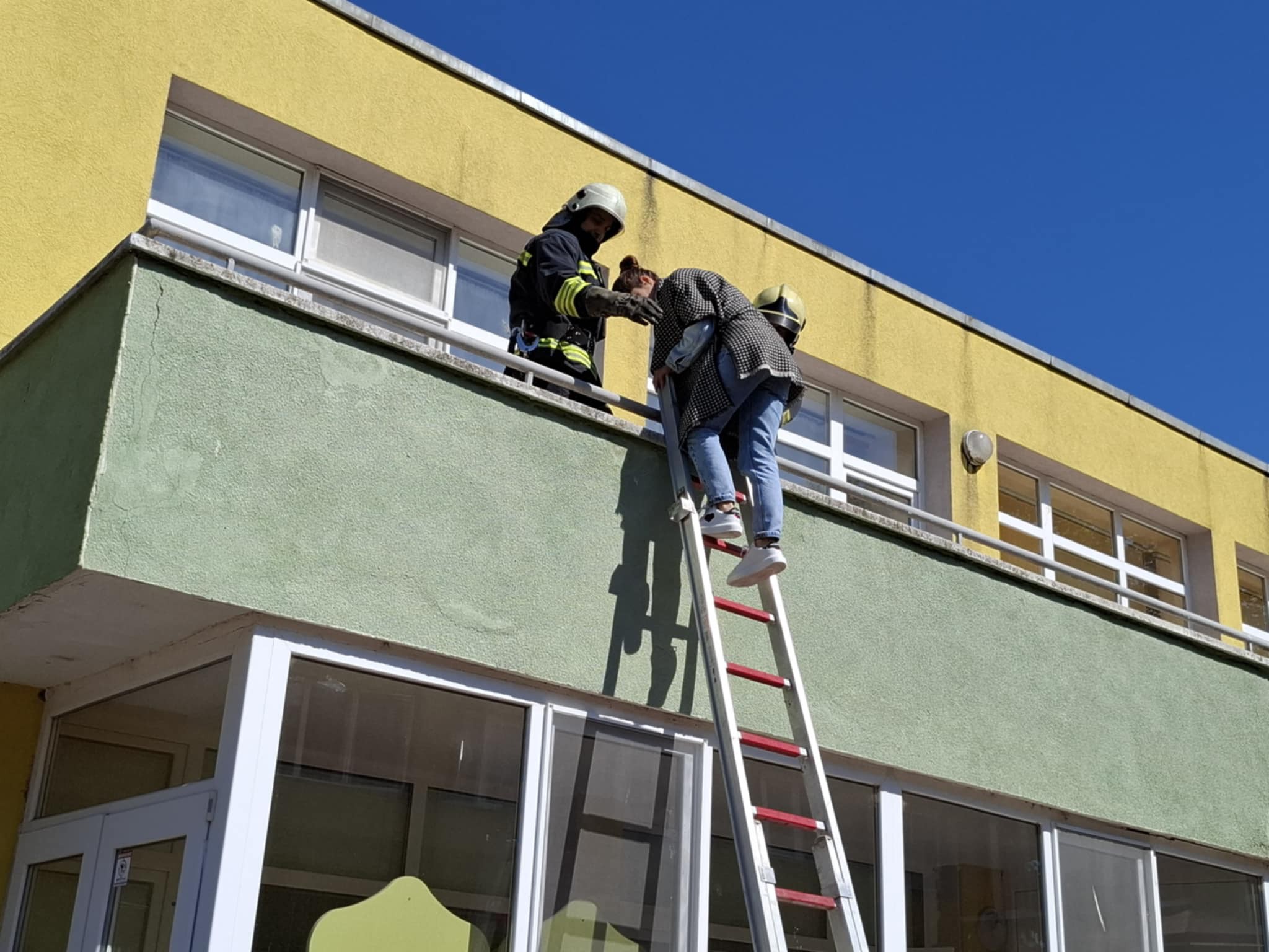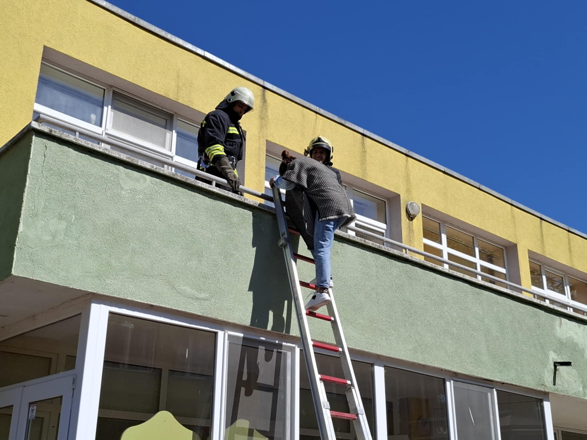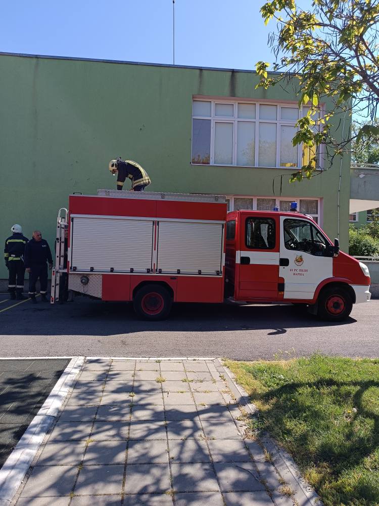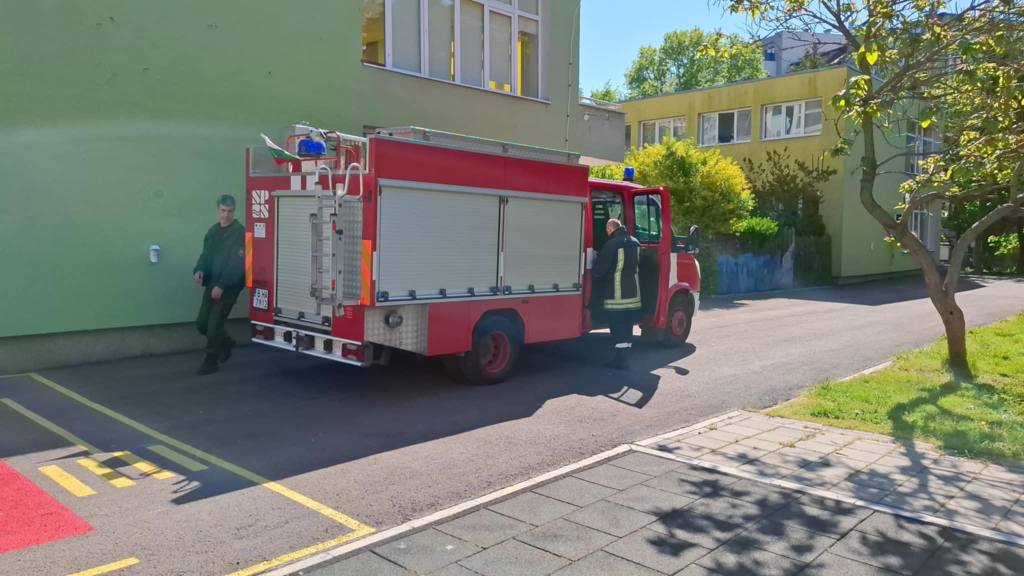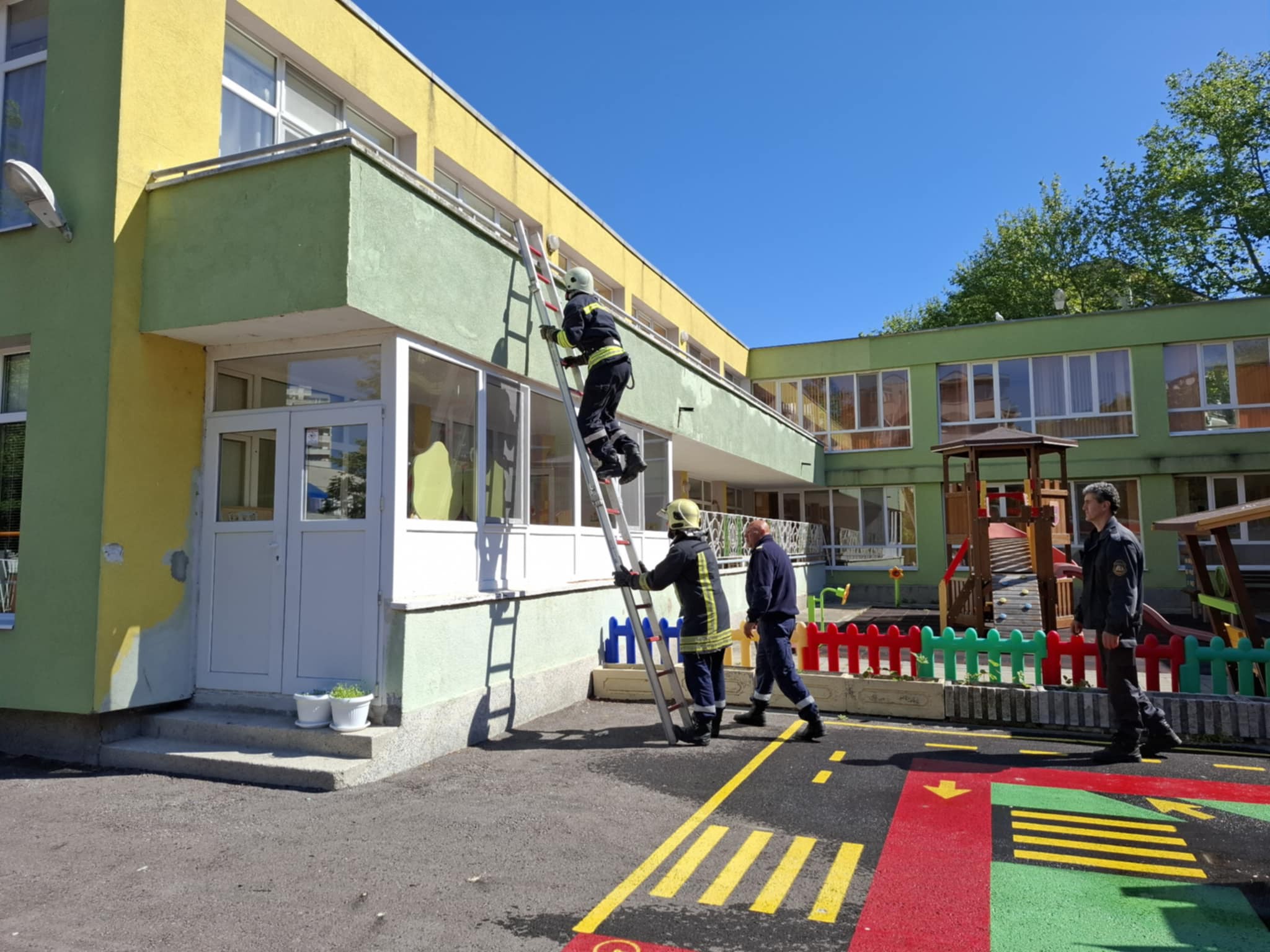 Днес на двора на детската градина се проведе учебна евакуация по Пожарна безопасност.