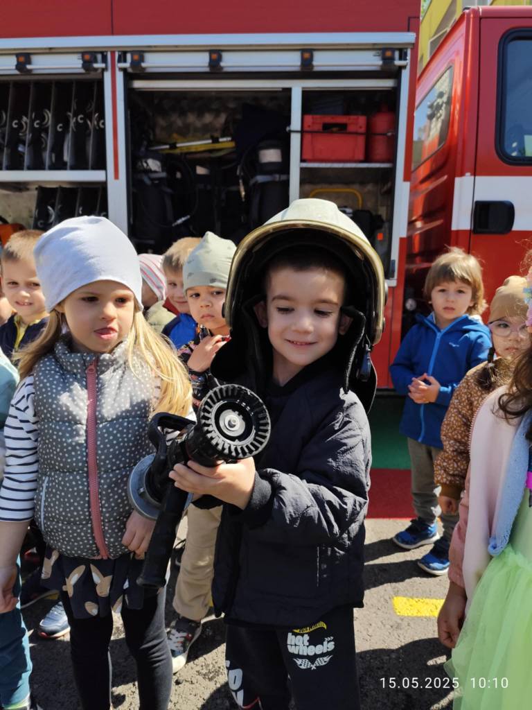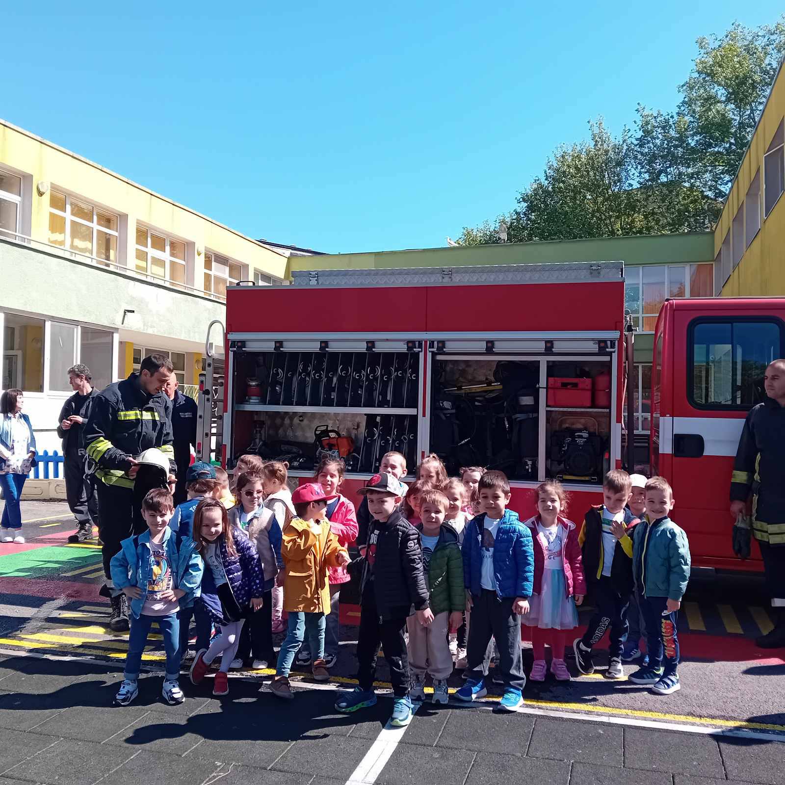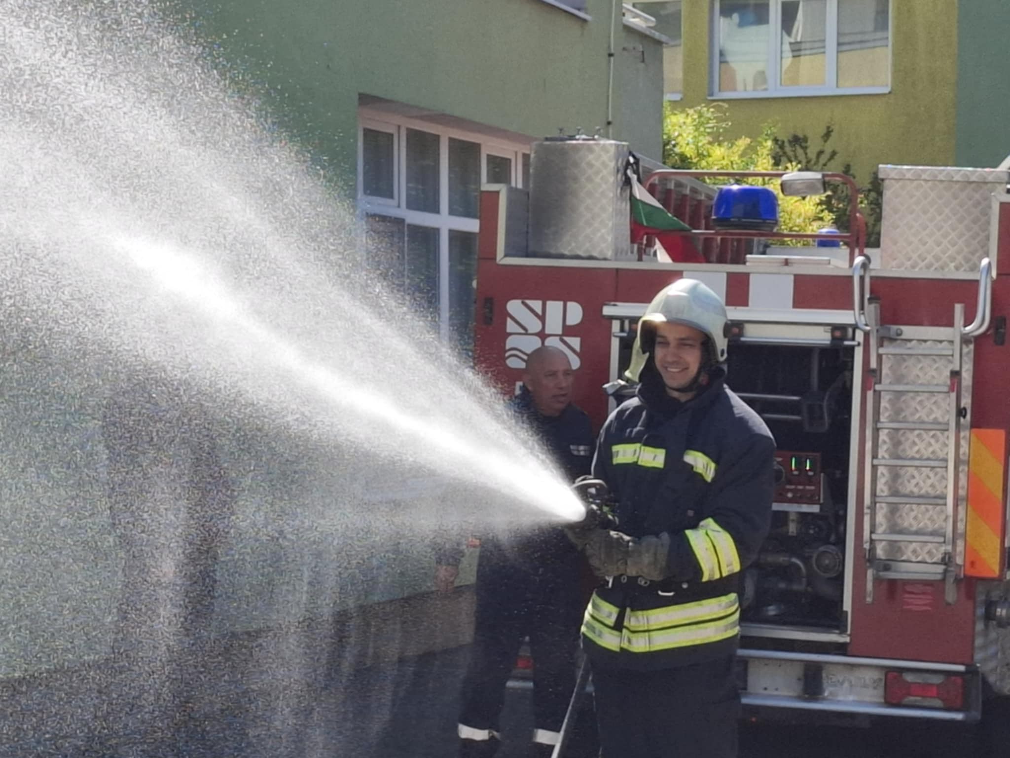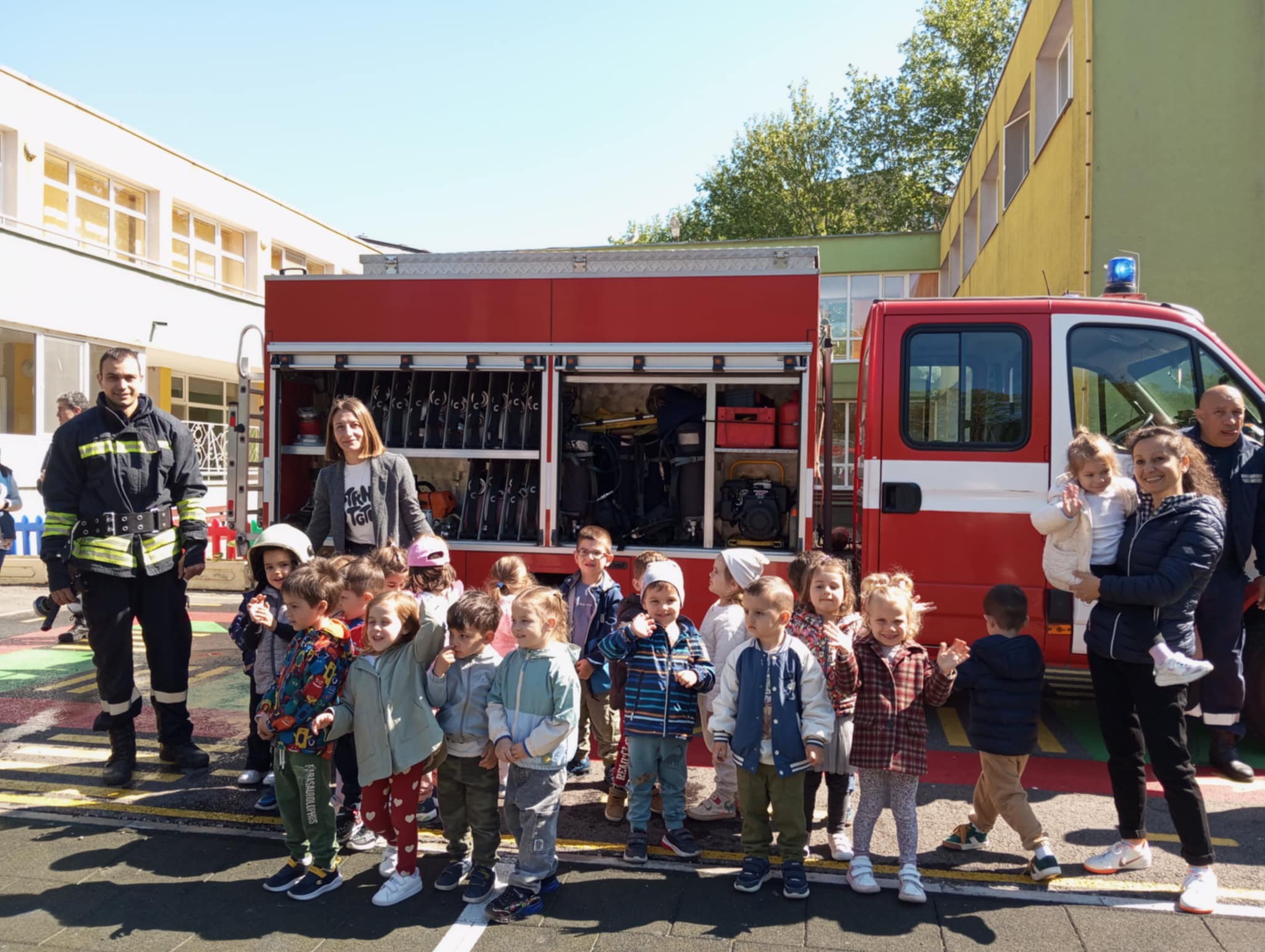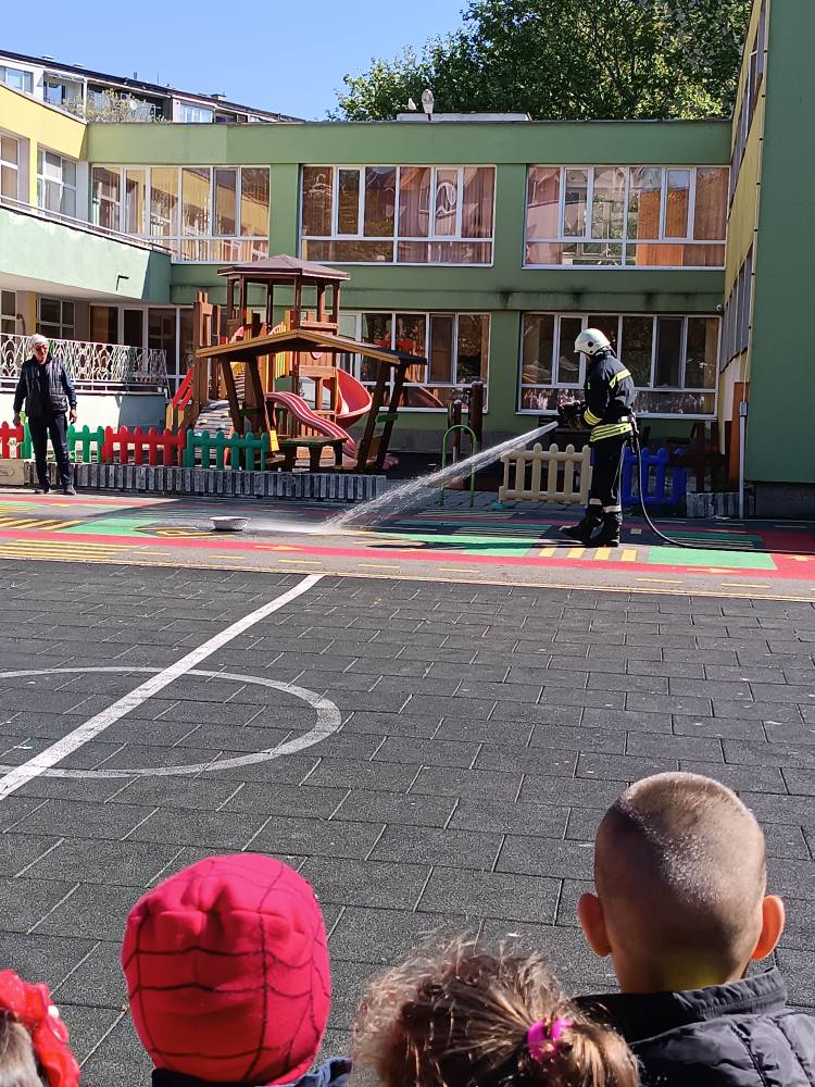 Децата присъстваха на демонстрация по гасене на пожар и спасяване на хора в горяща сграда. Докоснаха се до пожарникарското оборудване и разгледаха пожарния автомобил. И спечелиха нови приятели – смелите огнеборци.