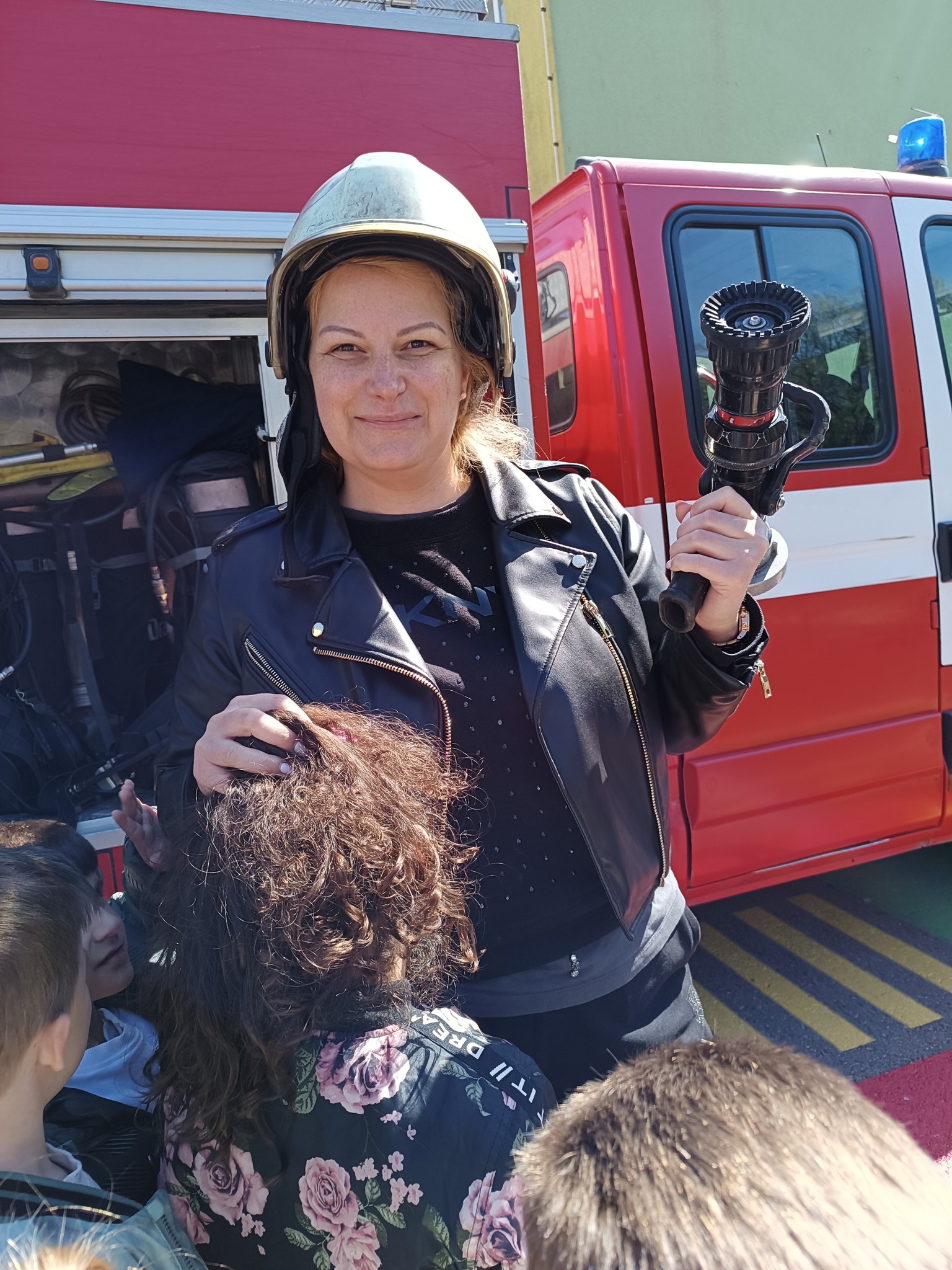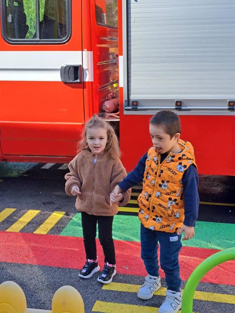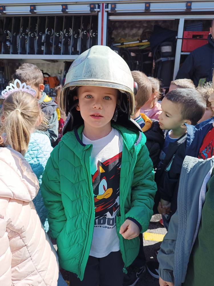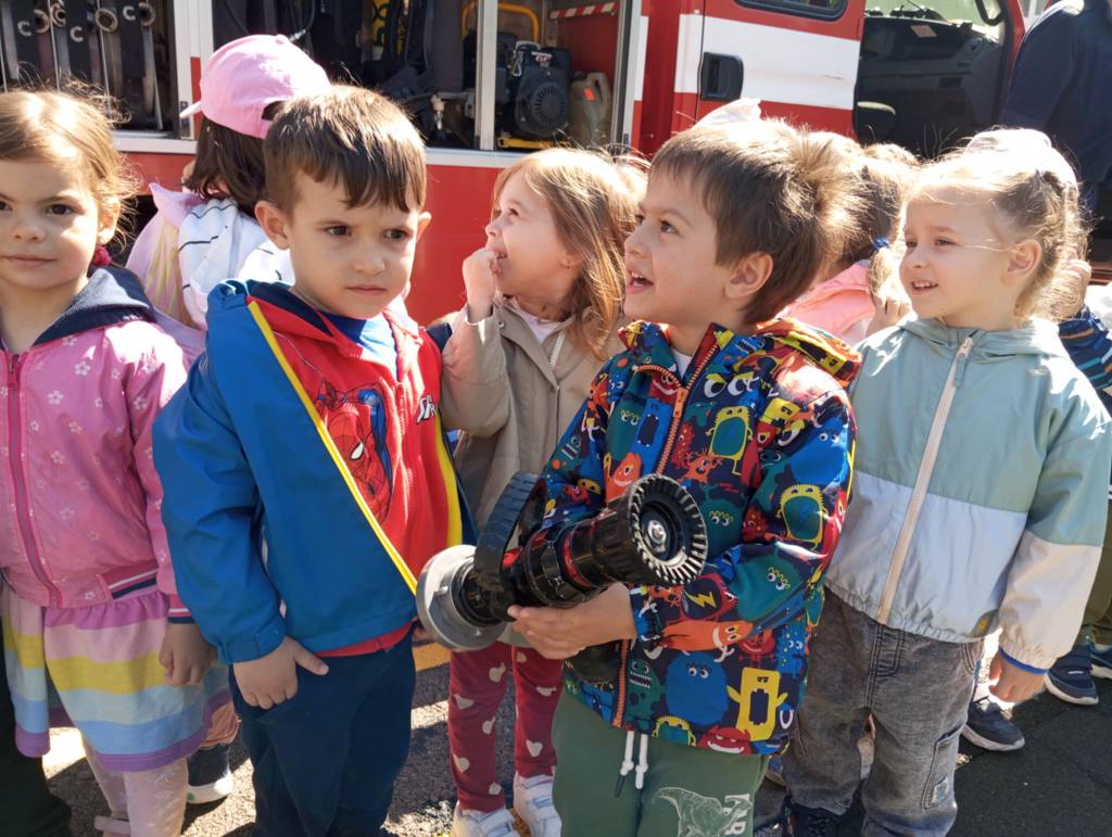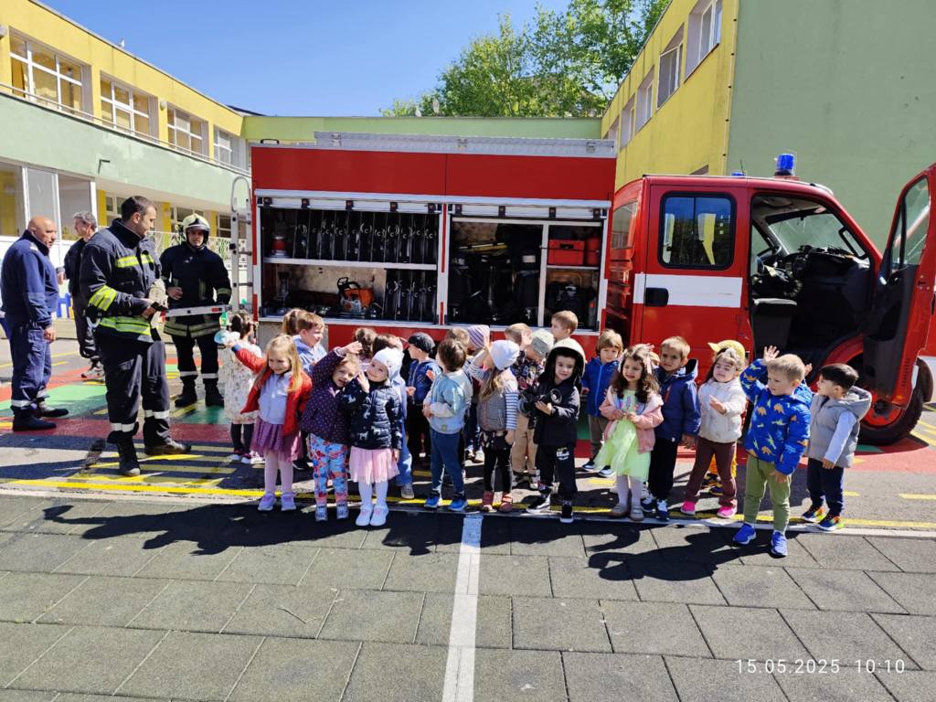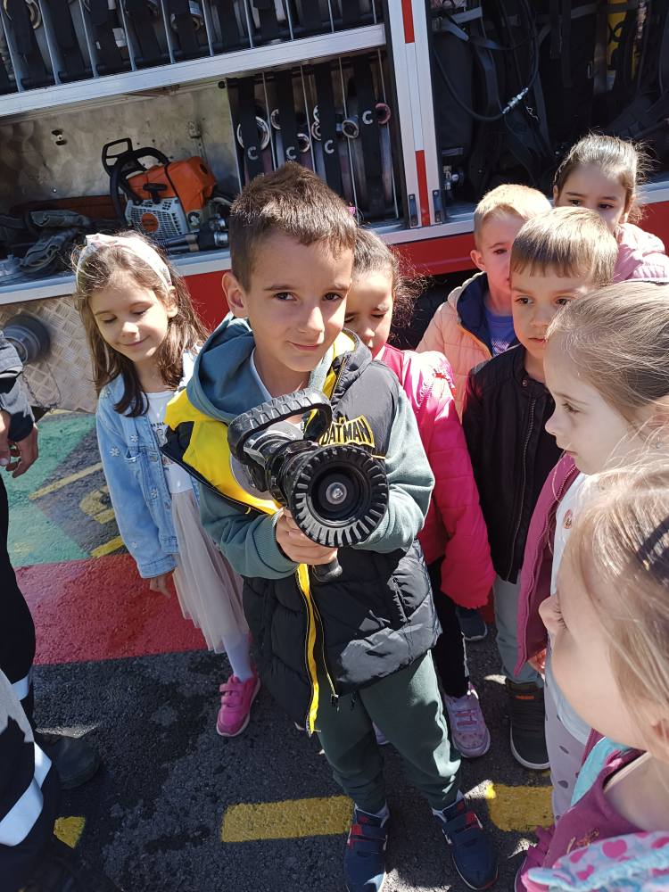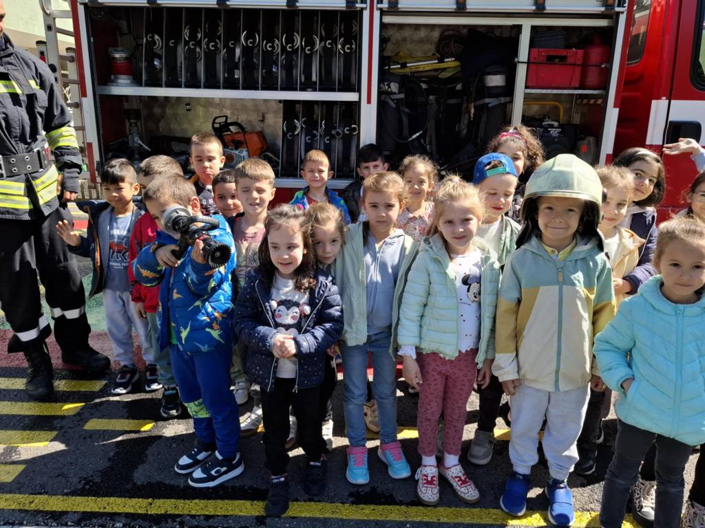 Децата присъстваха на демонстрация по гасене на пожар и спасяване на хора в горяща сграда. Докоснаха се до пожарникарското оборудване и разгледаха пожарния автомобил. И спечелиха нови приятели – смелите огнеборци.