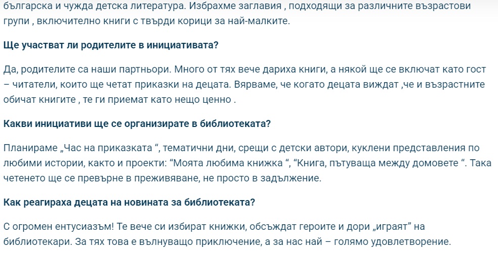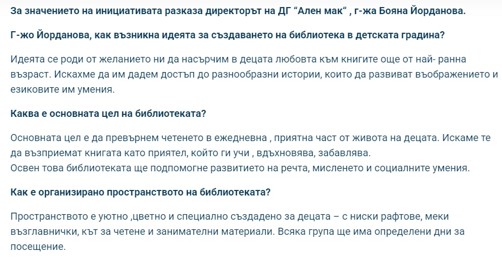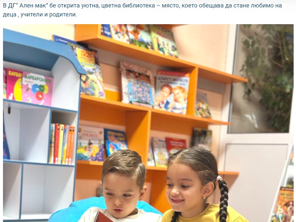 Уютна, цветна библиотека се превръща в любимо място за деца, учители и родители от ДГ “Ален мак“ във Варна