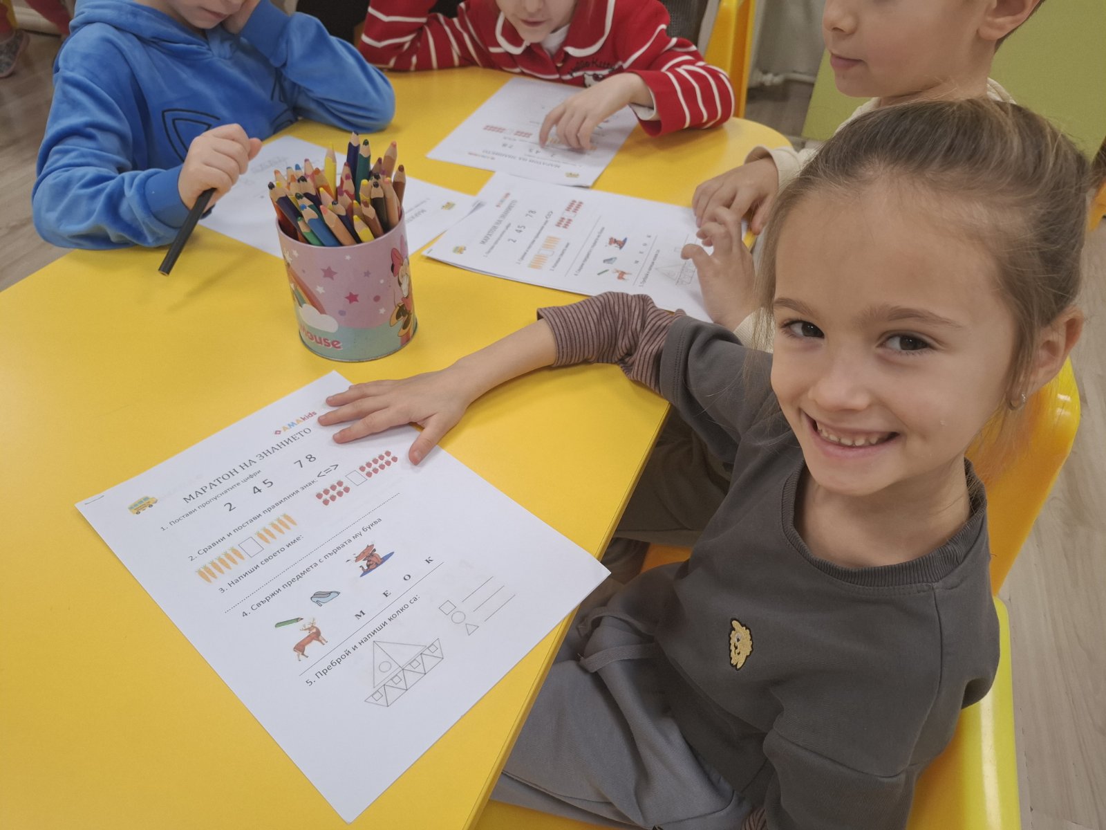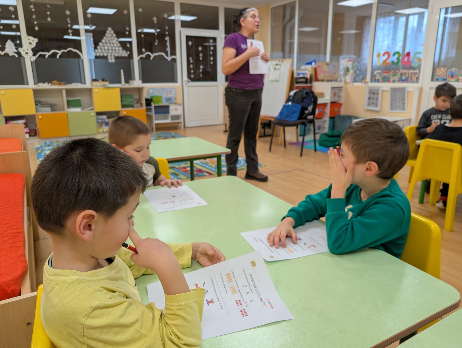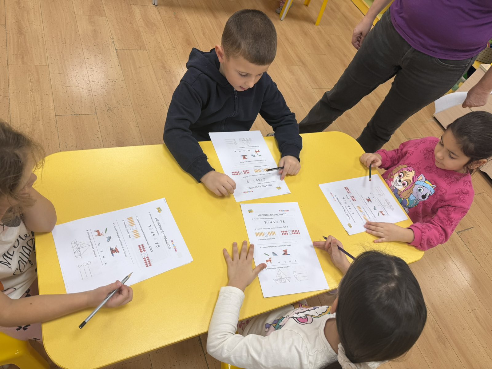 Заниманията с “Маратон на знанието” преминаха в две увлекателни части. В първата децата с интерес попълваха работни листи, а във втората чрез интерактивна образователна платформа се впуснаха в предизвикателства за наблюдателност, логическо мислене, памет и концентрация.
