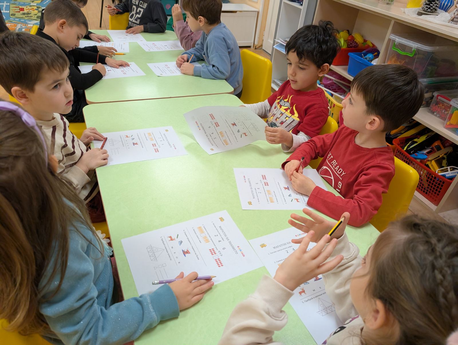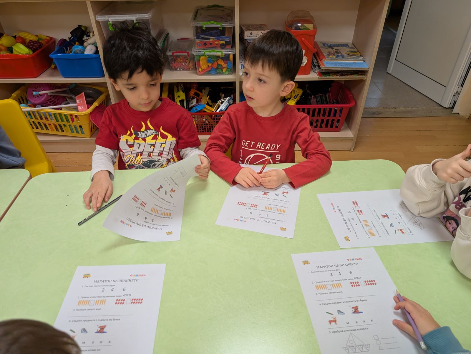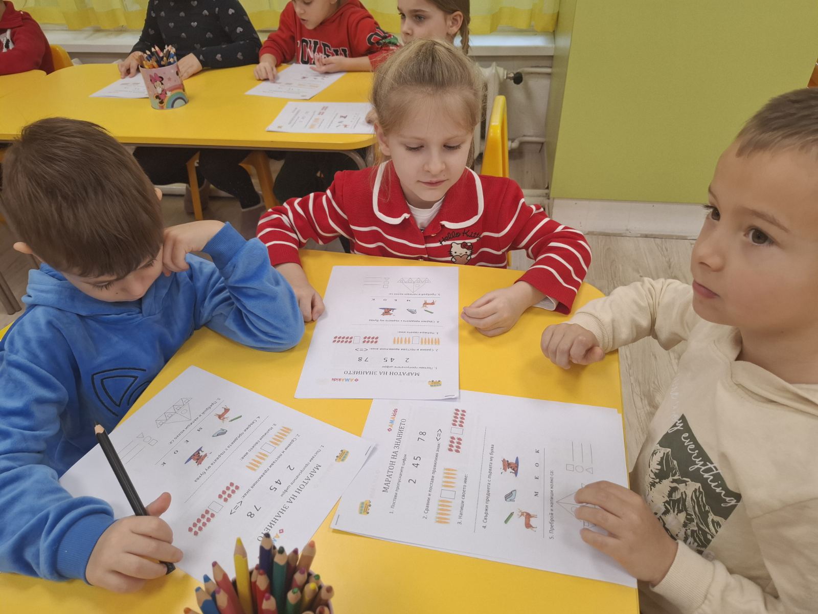 Заниманията с “Маратон на знанието” преминаха в две увлекателни части. В първата децата с интерес попълваха работни листи, а във втората чрез интерактивна образователна платформа се впуснаха в предизвикателства за наблюдателност, логическо мислене, памет и концентрация.